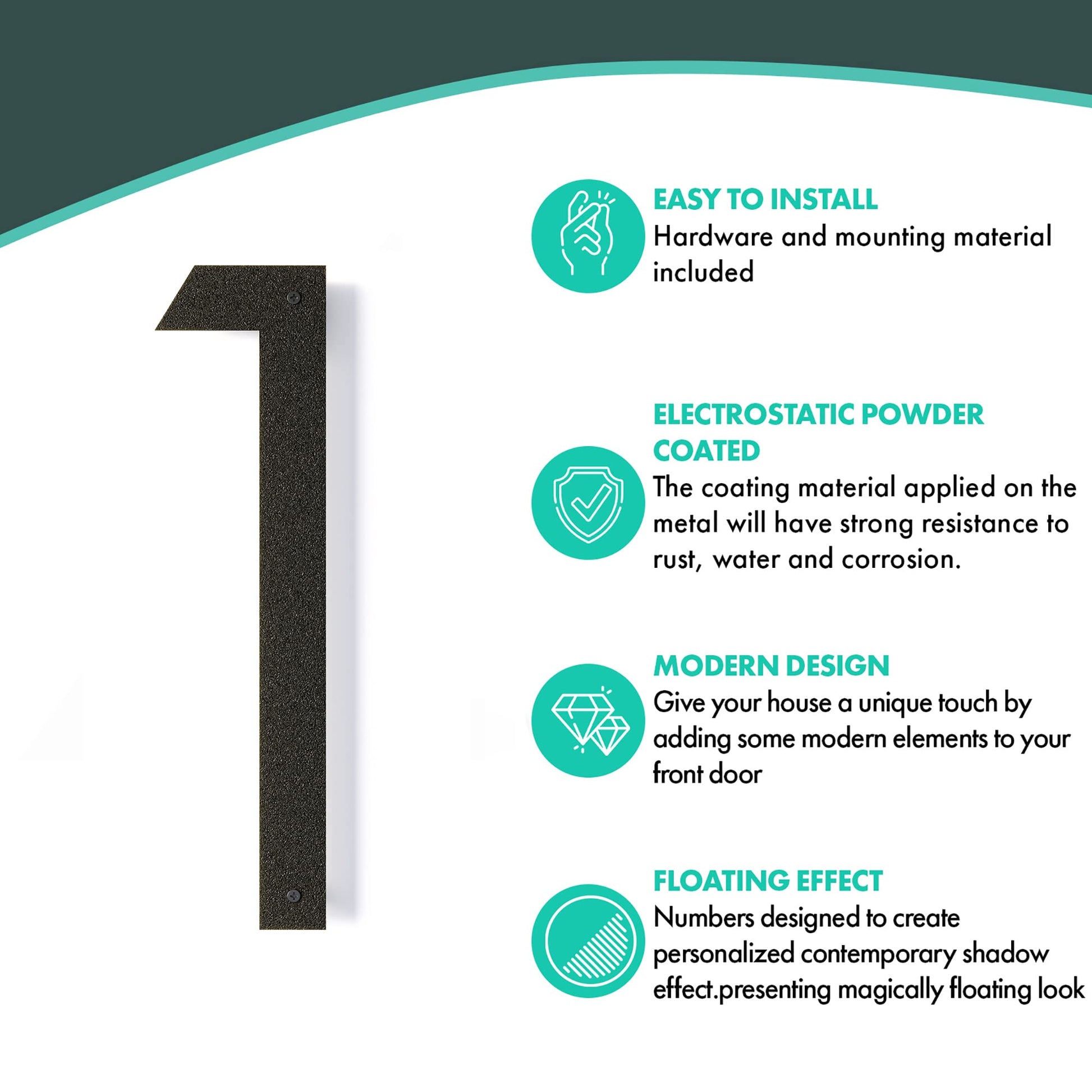 12 Inch Modern Floating House Numbers for Outside | Large Metal House Numbers for Outdoors | Black Coated Rust-Proof Home Address Numbers/Plaques | Metal Numbers