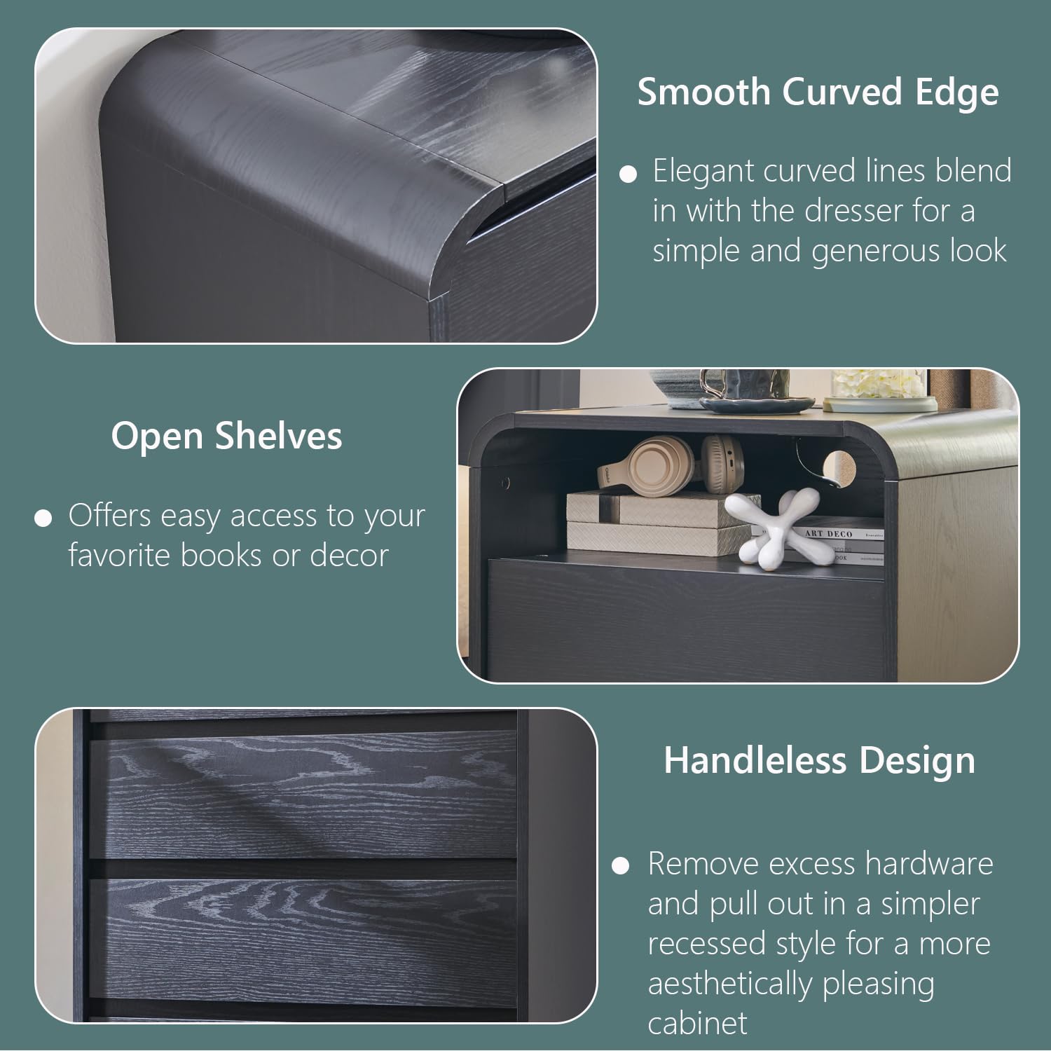 25" Tall Modern Nightstand Set of 2, 23.6'' Wide Wood Bedside Table w/2 Storage Drawers, Charging Station, Mid Century End Table for Bedroom, Living Room,Curved Profile Design, Natural Oak