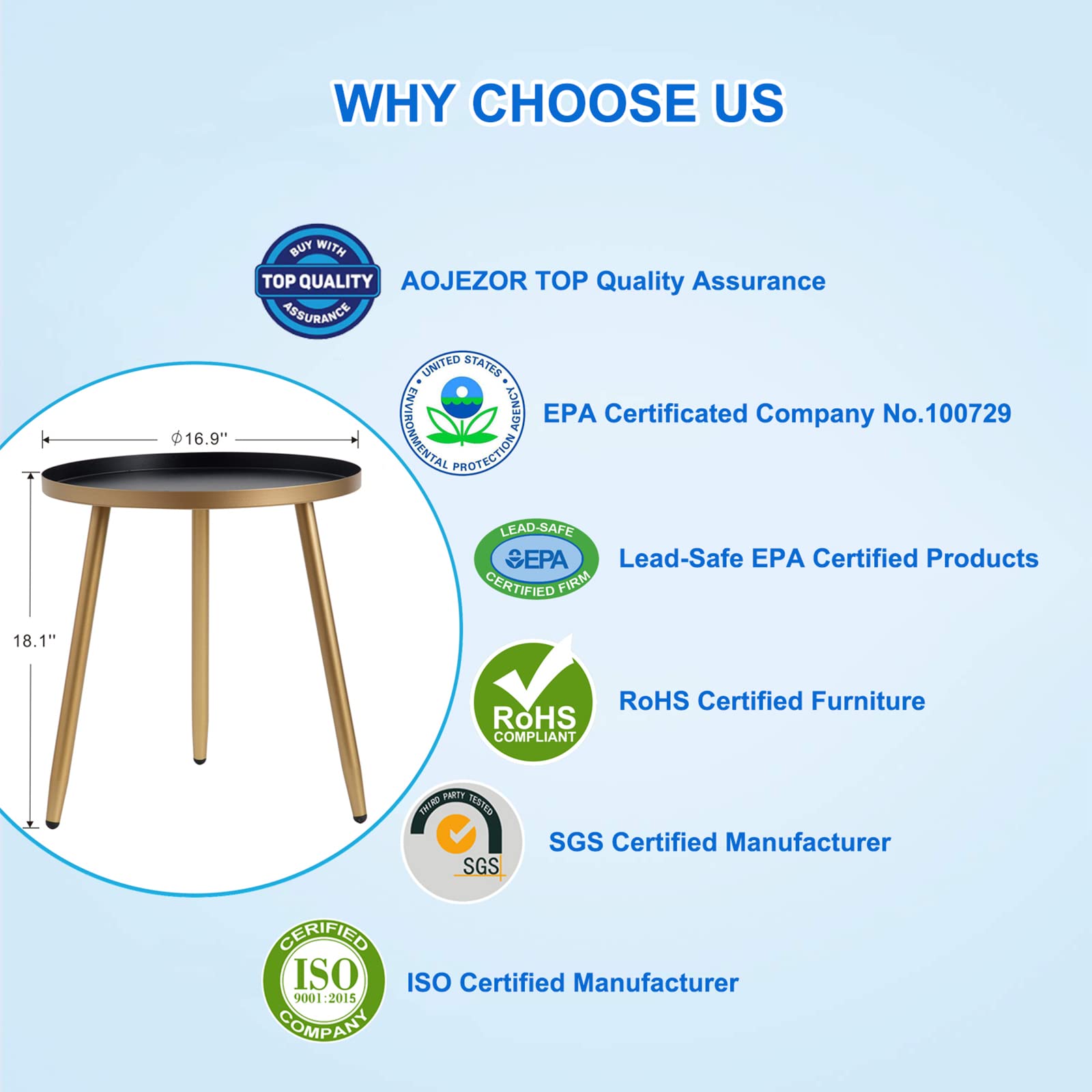 - AOJEZOR sell end tables as if we were customers. We value both your time and your money. Most cost-effective product options, but never lack of practical function and decorative purpose, are offered. Make your every shopping mimute and every penny count.