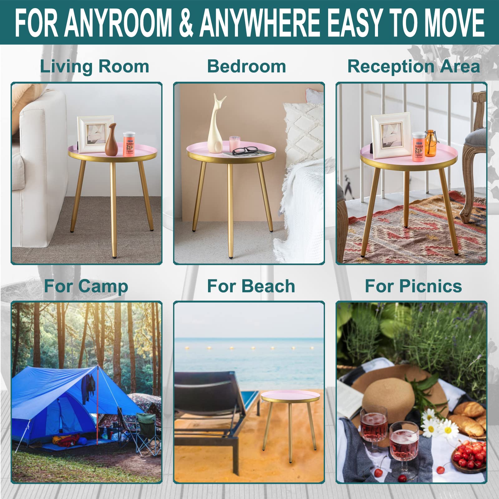 - Powder coating finish on the solid metal surface, compact size and lightweight, easy to move or carry out, use this end tables will be great to take with you.