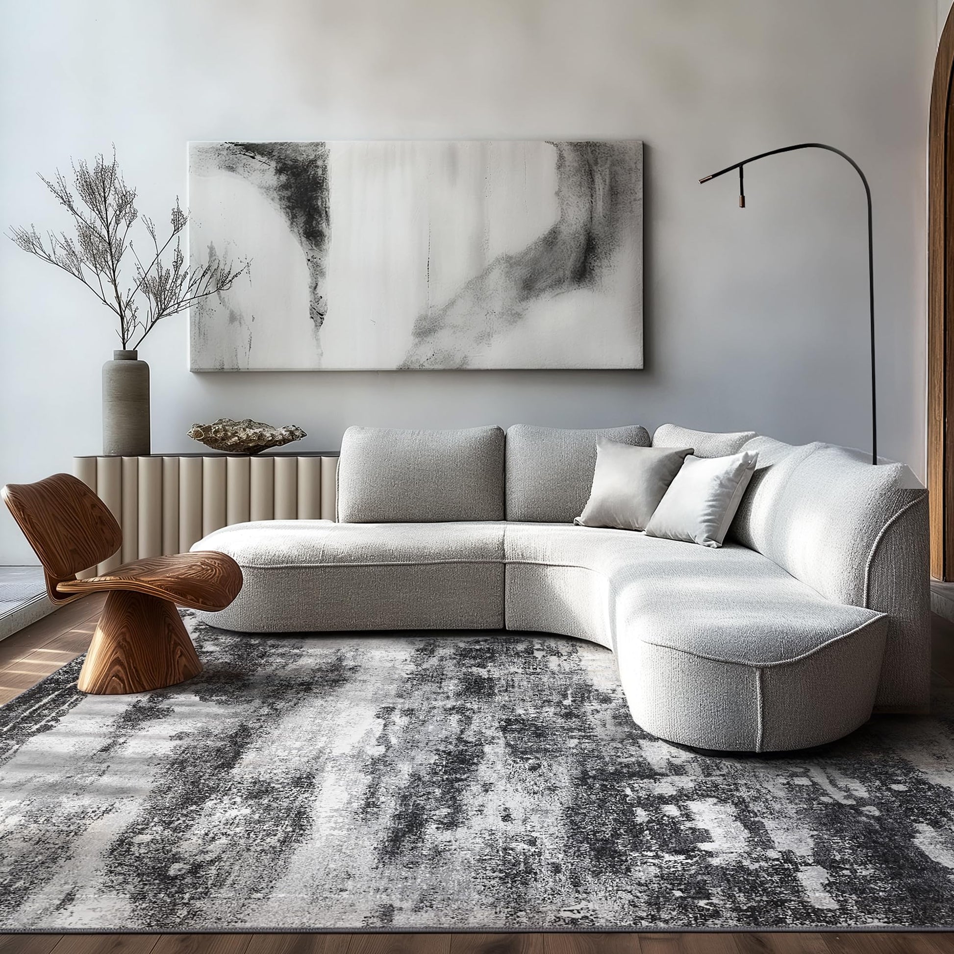 Area Rugs 5x7 for Living Room Bedroom, Modern Abstract Machine Washable Large Light Green Rug Soft