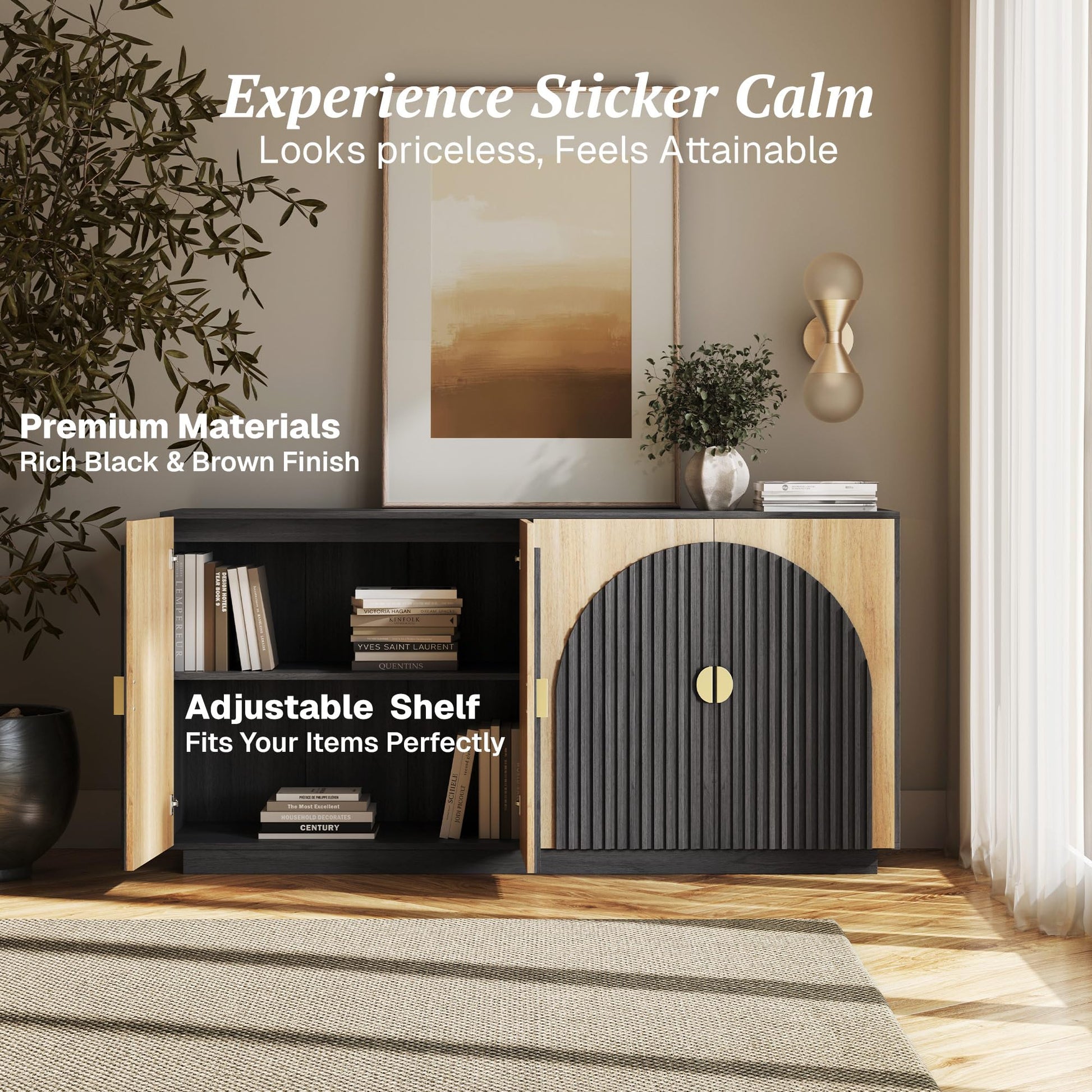 - Ample Storage & Display: Two tall storage cabinets and a central tv console provide versatile media storage. Inside, adjustable shelves and smooth-glide compartments keep entertainment components, books, or decor organized and out of sight—ideal as an entertainment center with storage or a credenza storage cabinet.