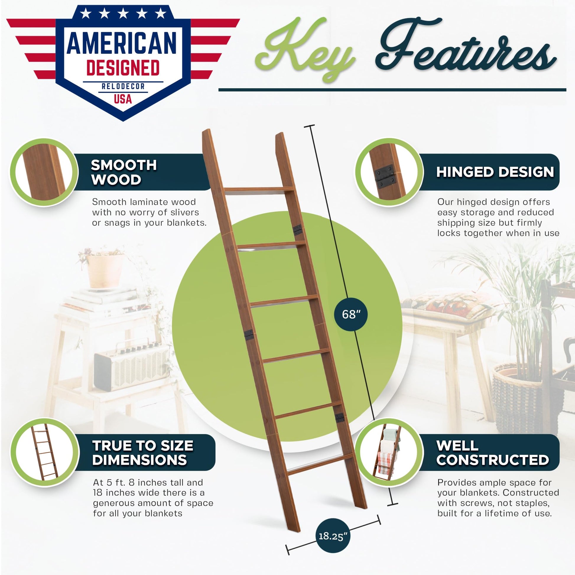 Rustic Decorative Farmhouse Blanket Storage, Quilt Rack, Ladder Shelf, Easy Assembly