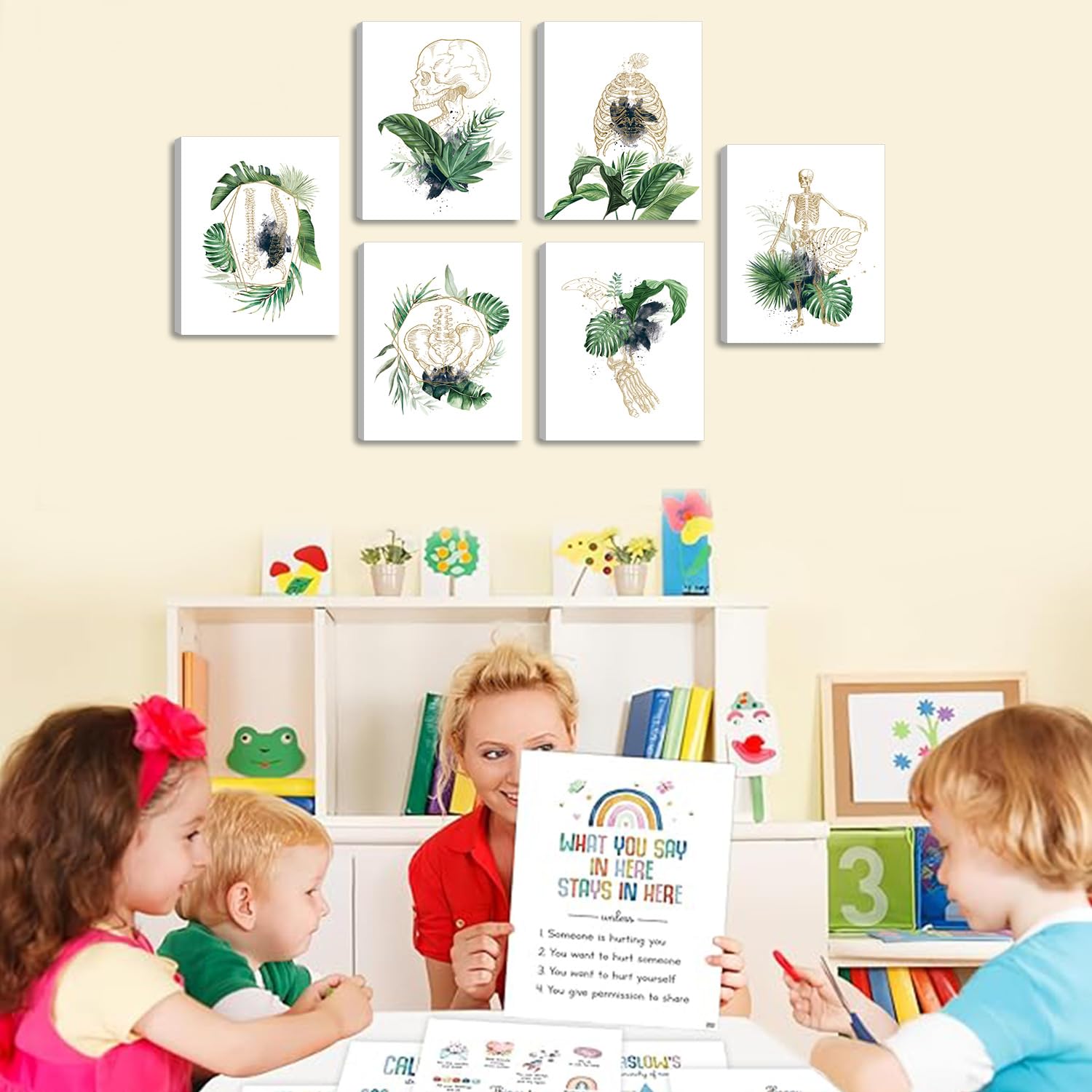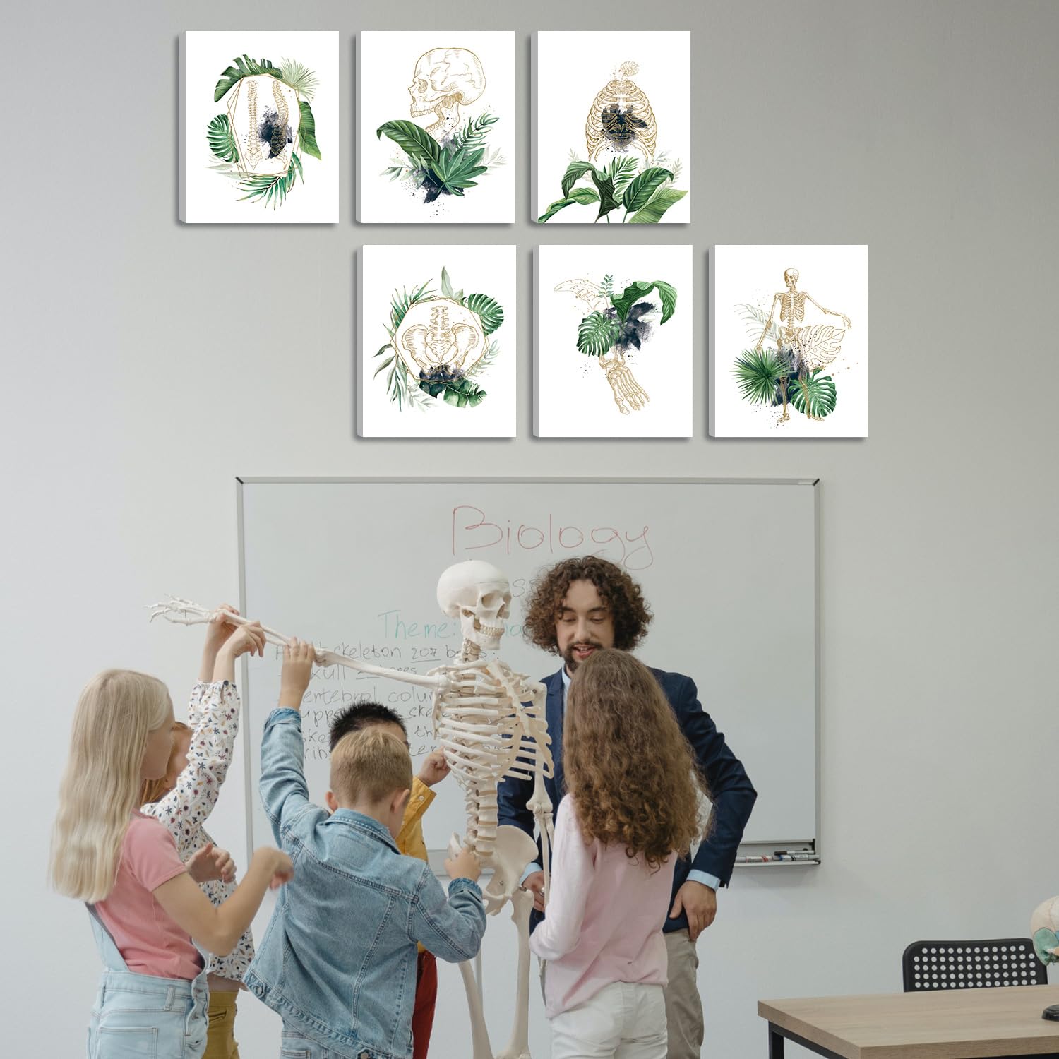 CHDITB Unframed Flowers Skeletal Wall Art Print, Human Organs Art Printing, Body Anatomy Art Posters Abstract Anatomy Viscera Skull Wall Decor, Medical Wall Art For Clinic -Set Of 6 (8" x 10")