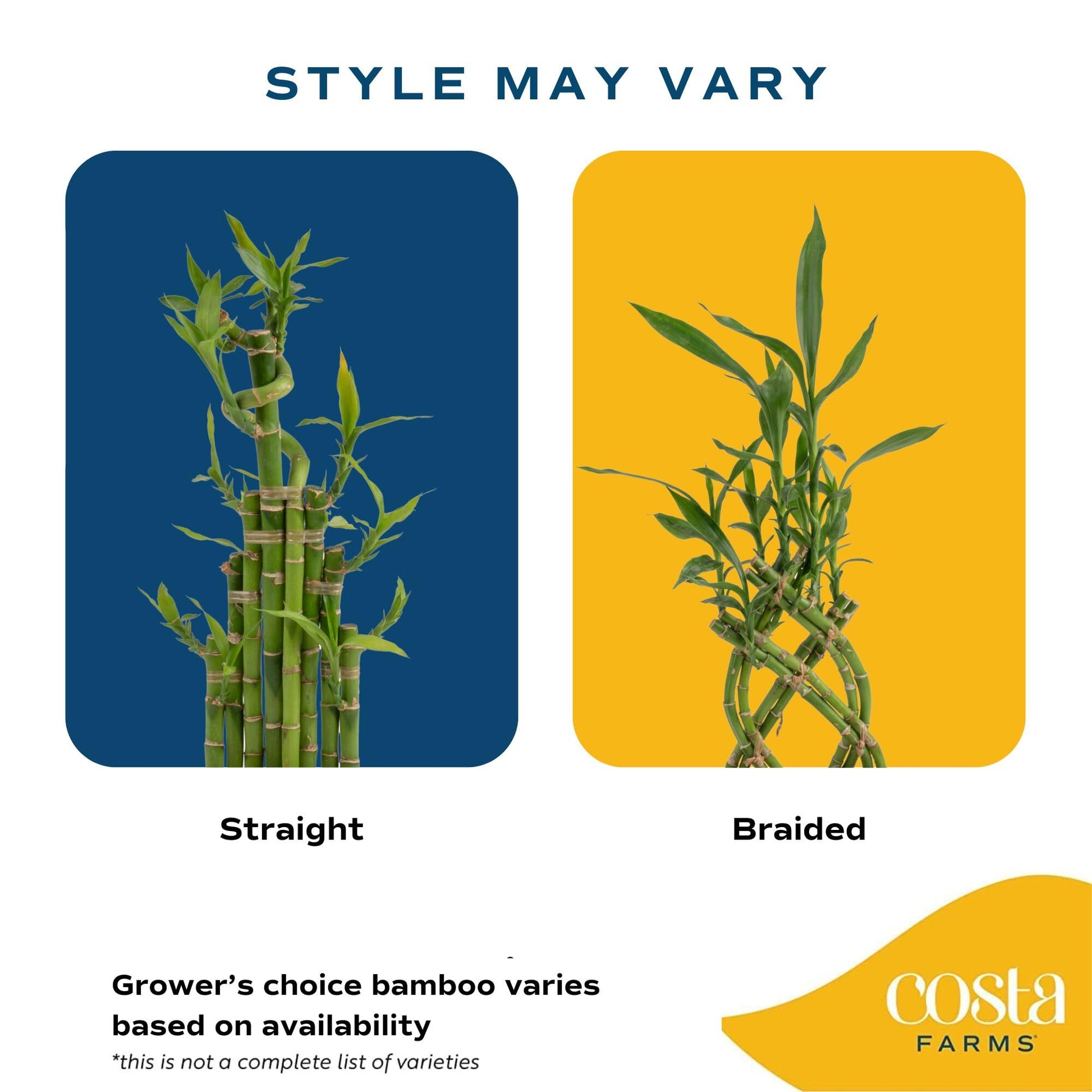 Costa Farms Lucky Bamboo Plant, Easy to Grow Live Houseplant in Indoor Bamboo Pot, Potting Mix, Grower's Choice 12-Inches Tall