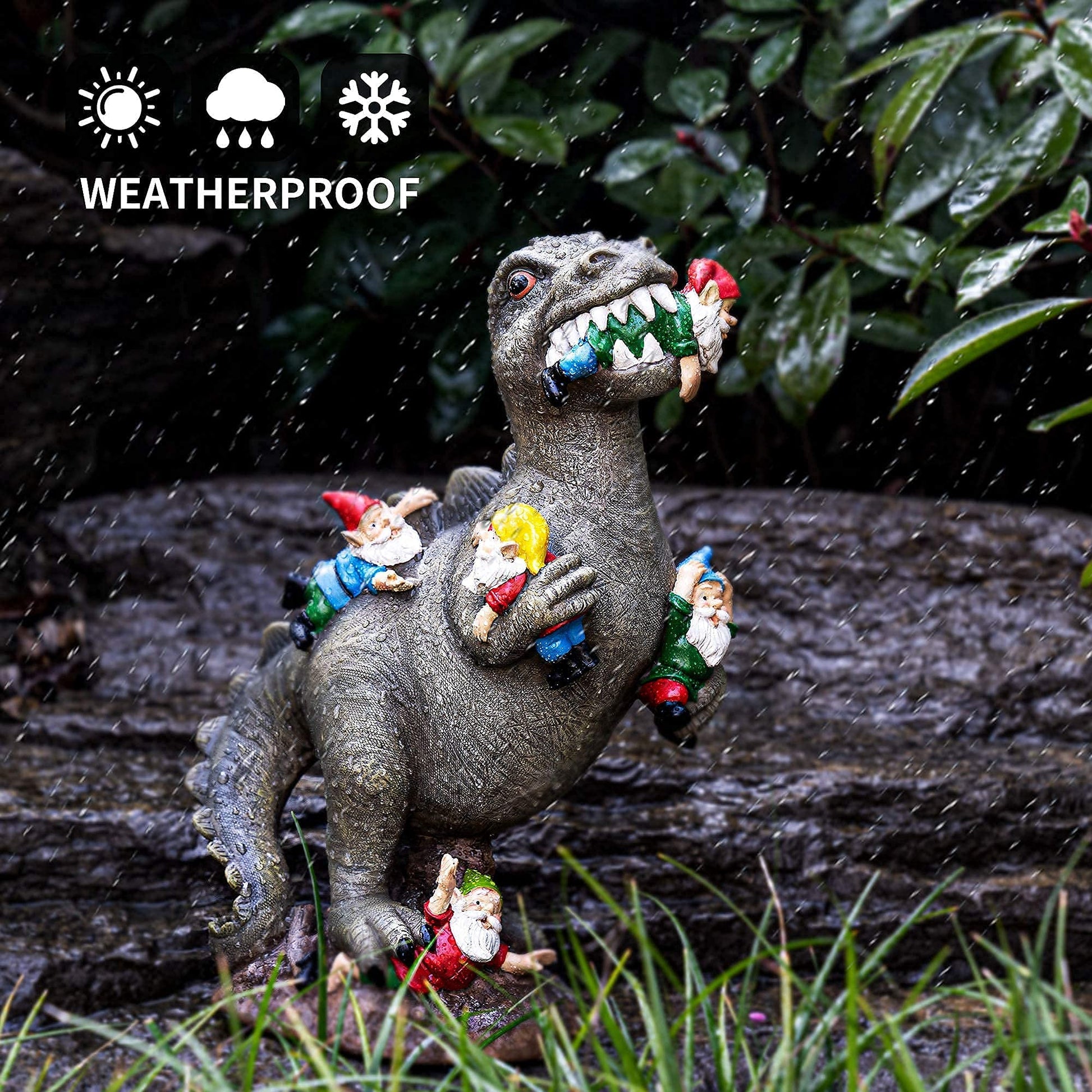 - Adorable Garden Decor: This Dinosaur Gnomes Statue made up of high-quality resin and has excellent weatherproof performance, is an adorable decoration for garden, lawn, patio and yard which can make your home more lively