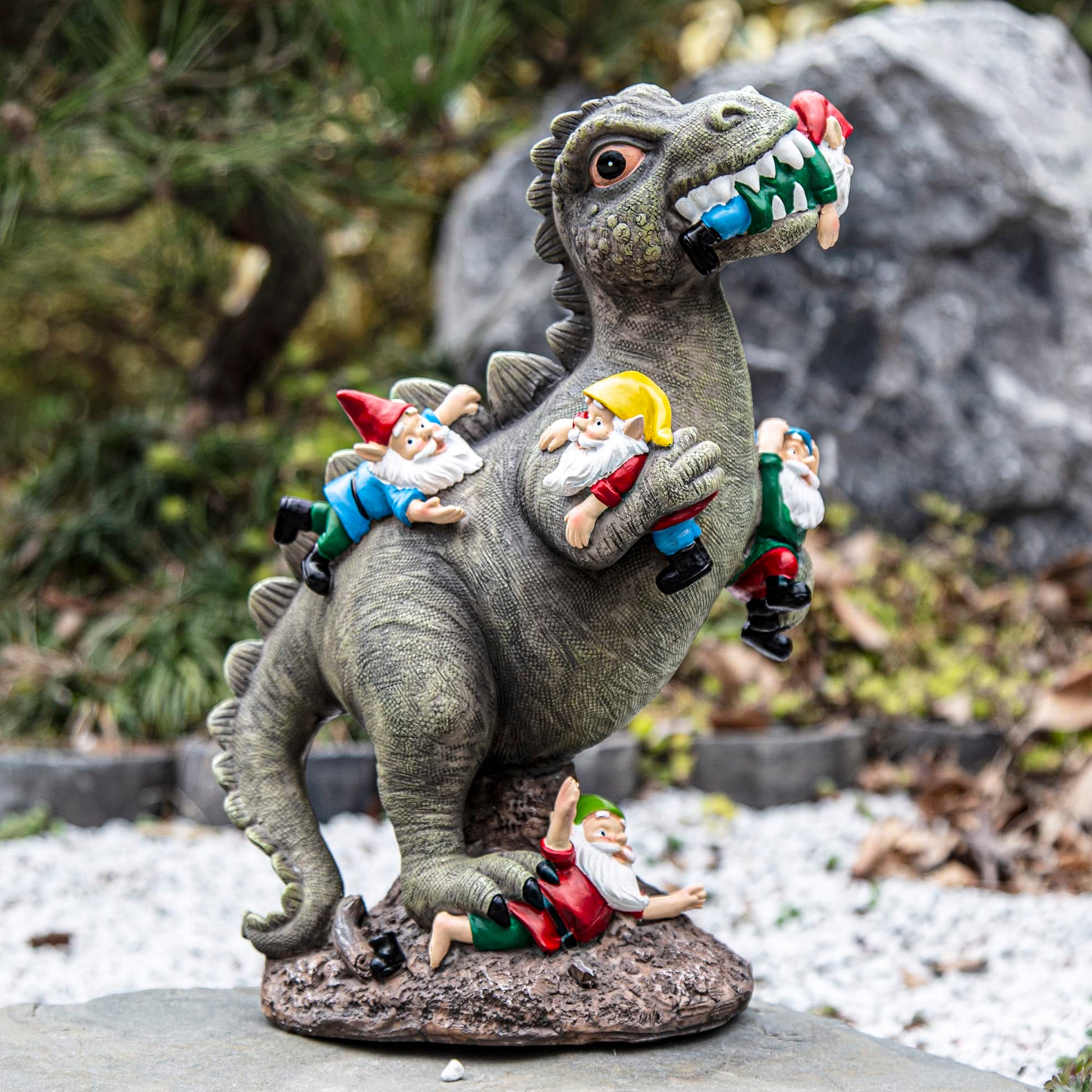 Garden Gnomes Statues Yard Decorations Outdoor Garden Decor, 14” Dinosaur Gnomes Garden Statues, Patio, Lawn Ornament, Gardening Gifts for Women for Housewarming