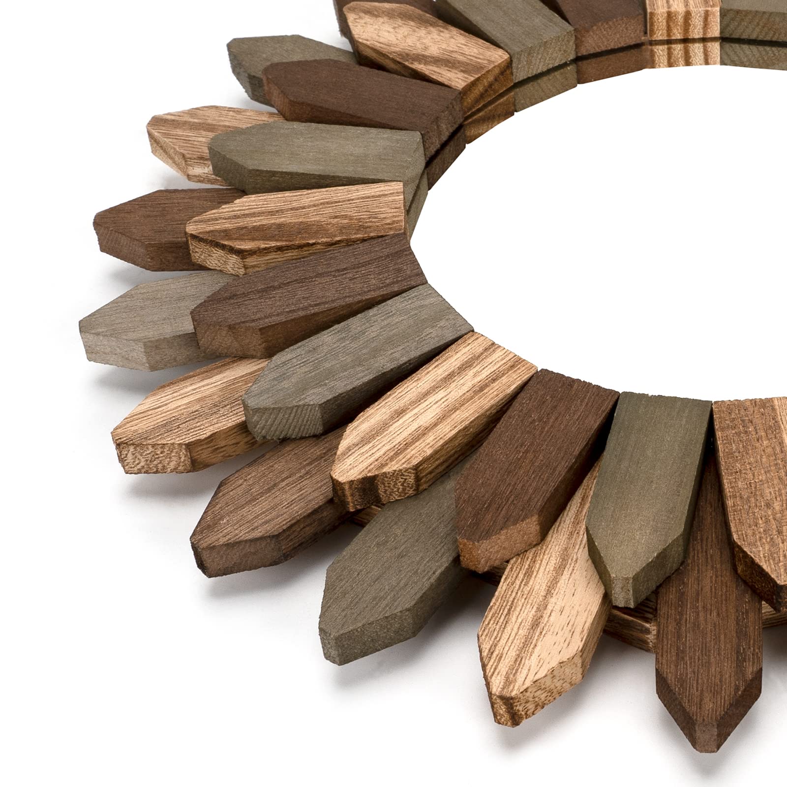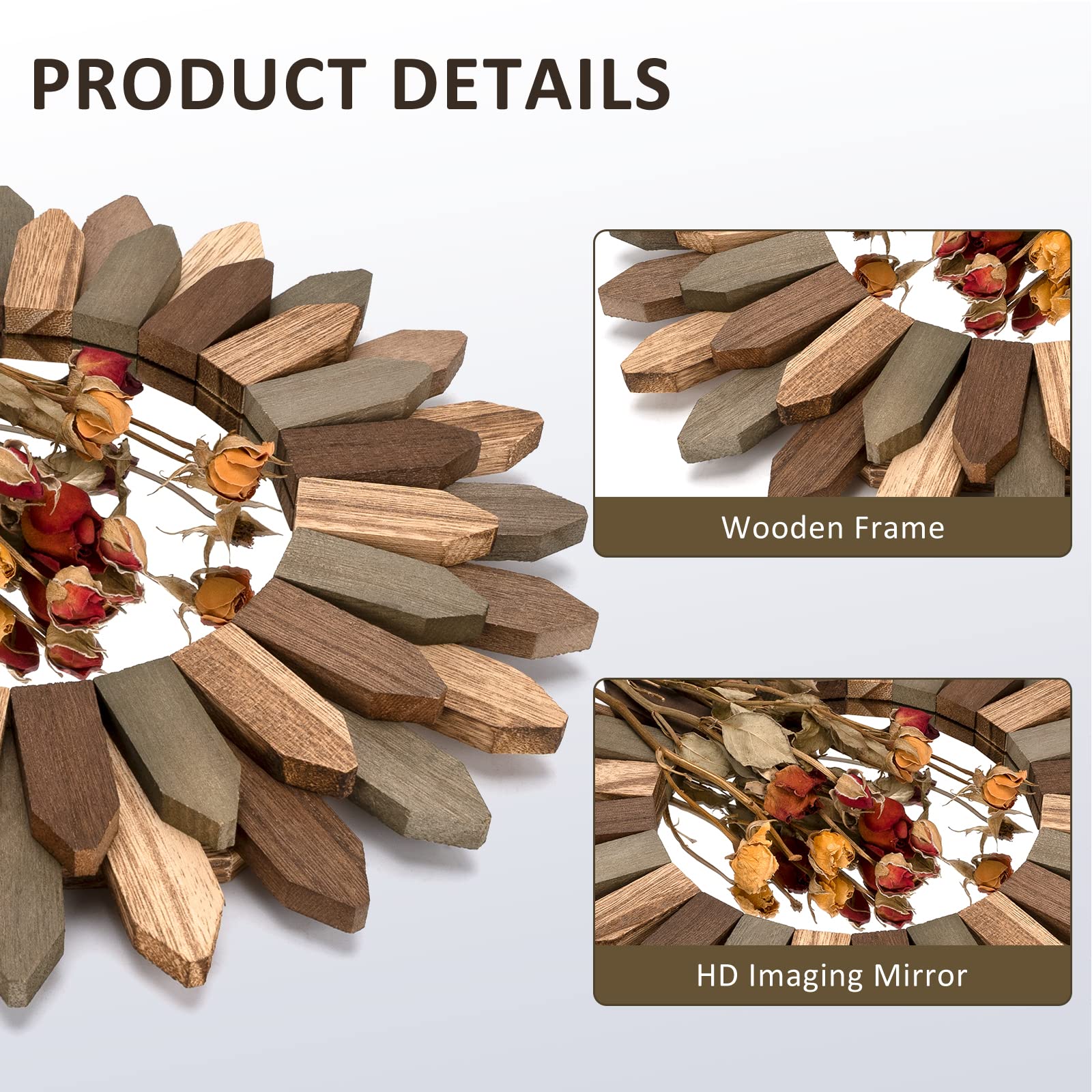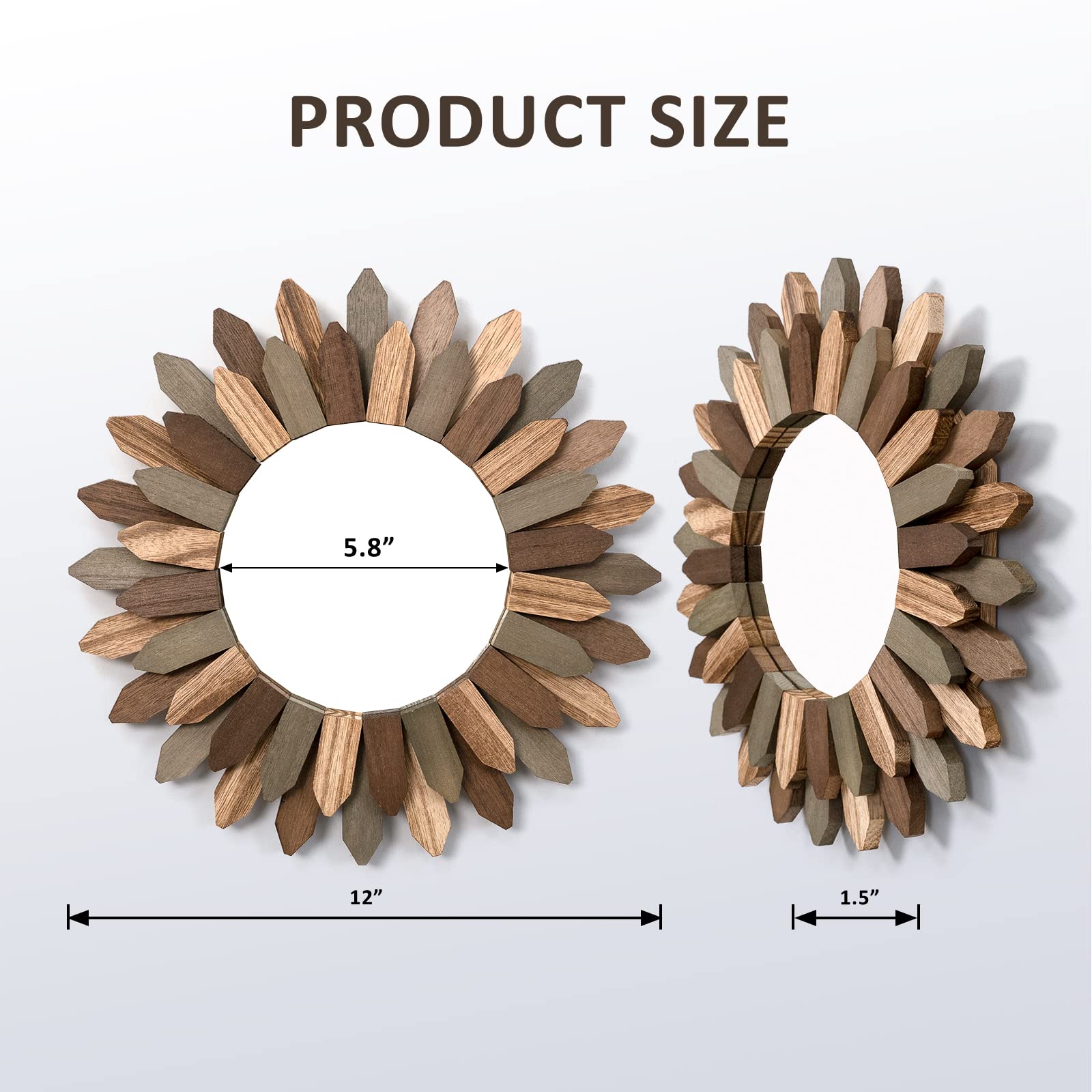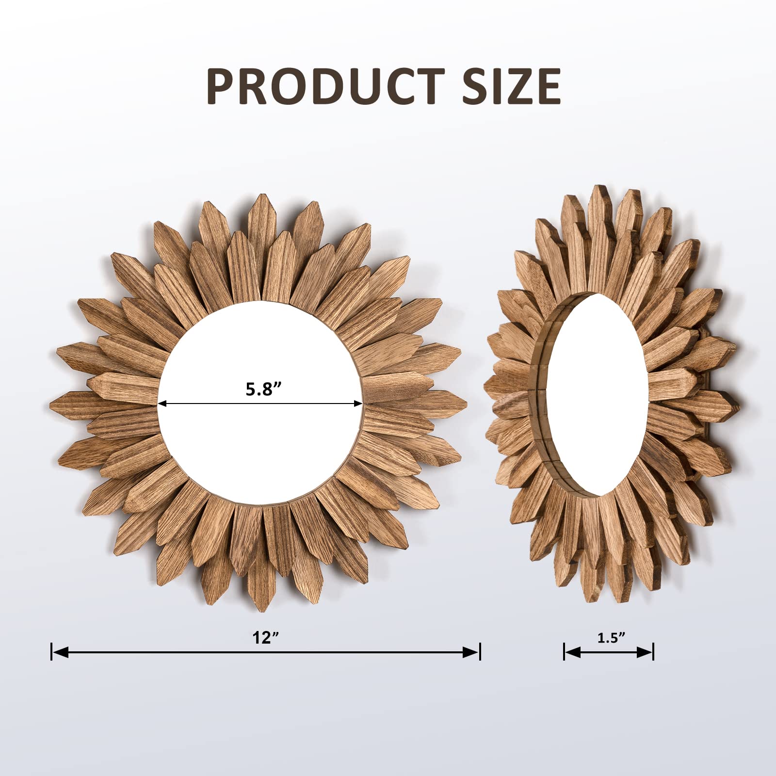 - Boho Wall Decor 12 In Mirror: The design of wood sunburst base on the element of boho style, it will be a nice boho wall art and goes well with your boho decor, farmhouse decor country rustic decor,modern deocr style; A perfect room decorations for your bedroom, living room, bathroom, kitchen, fireplace, entryway, home office, school, new partment, guest room of hotel