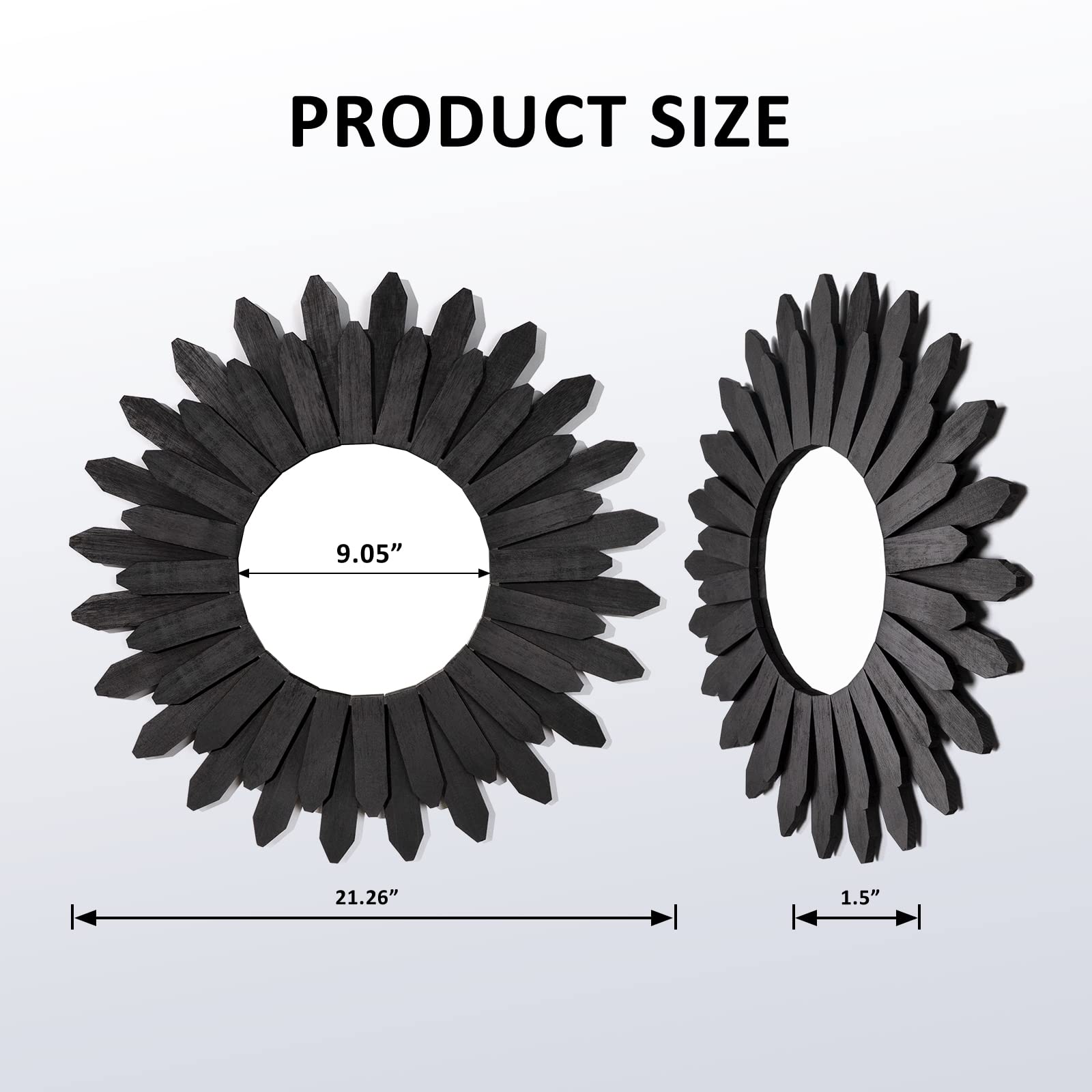 Honiway Wall Mirror Decorative 12 inch Rustic Wood Mirror Sunburst Boho Mirror for Entryway Bedroom Living Room Bathroom House Warming Gifts New Home Essential Carbonized Black