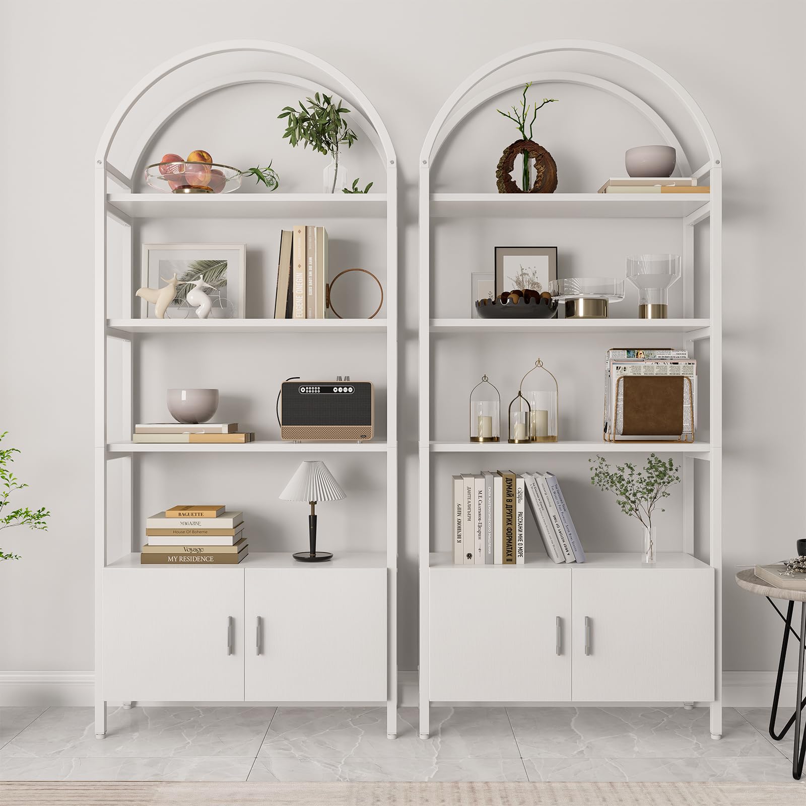 Arched Bookshelf, Bookcase with Doors Storage, 71 Inches Tall Industrial Book Shelf with Sturdy Metal Frame, E1 Quality Boards, Freestanding Display Shelving Unit, Black