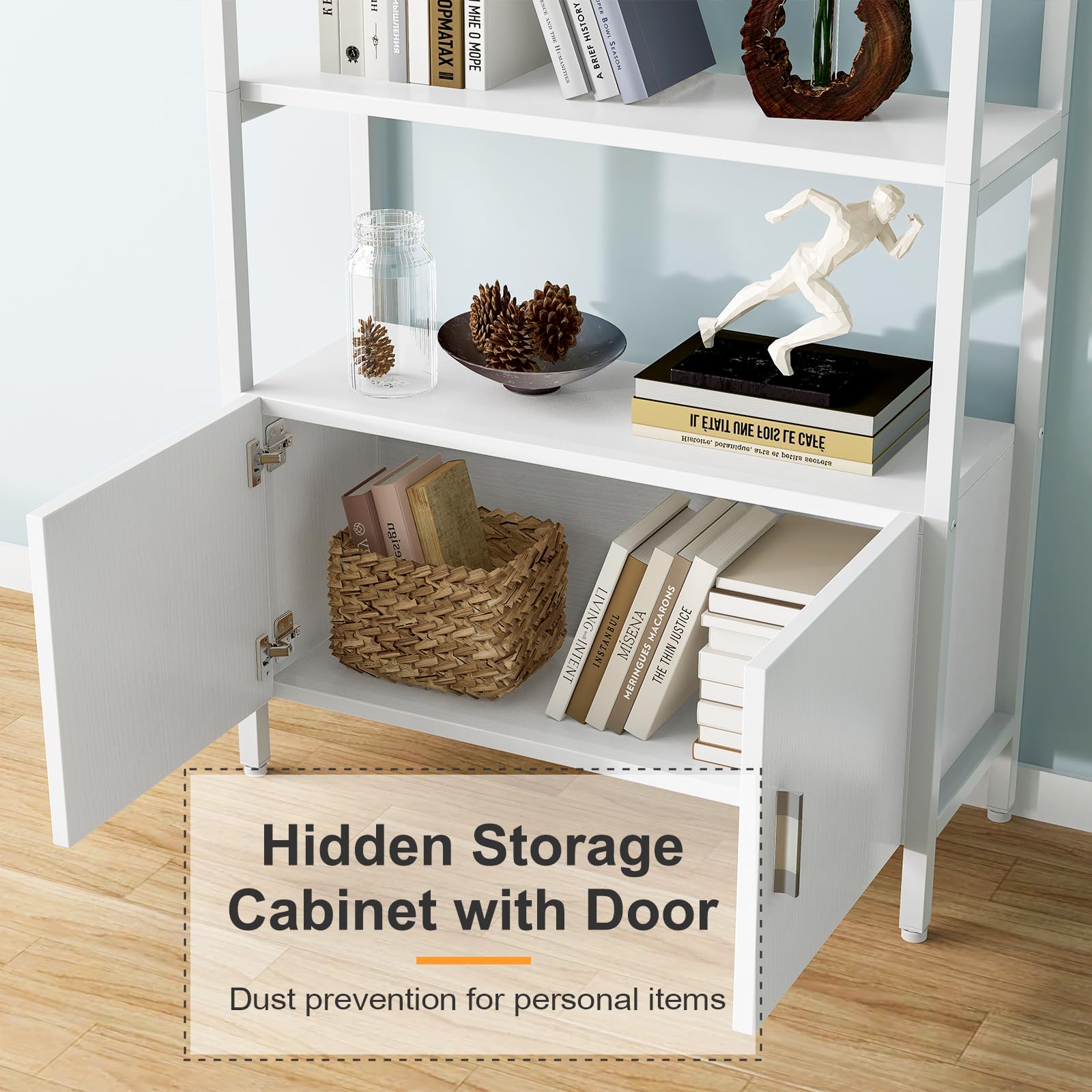 - 【4+1 Display & Storage】With 4 open shelves and 1 hidden storage cabinet, this bookcase allows more flexibility to store or display your items