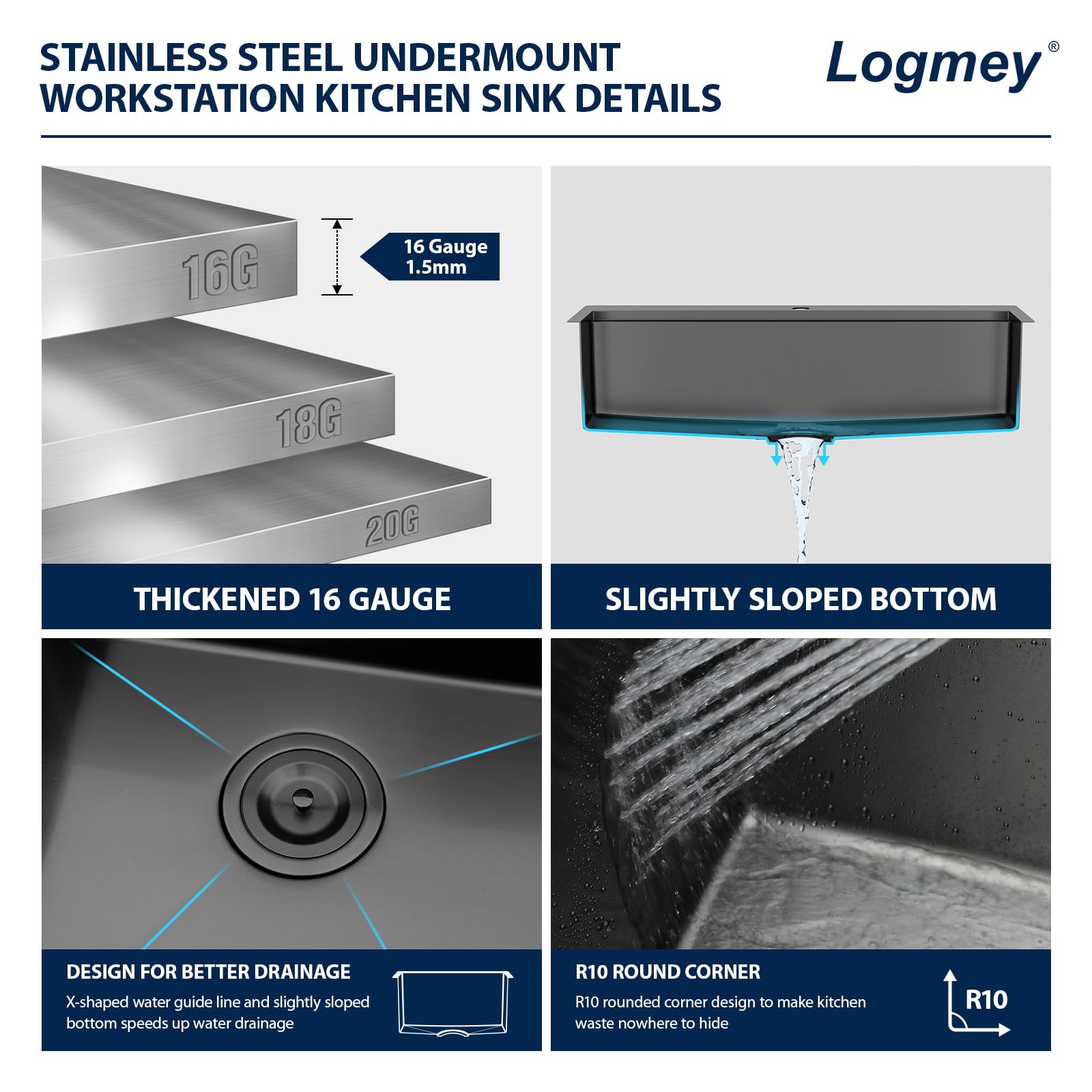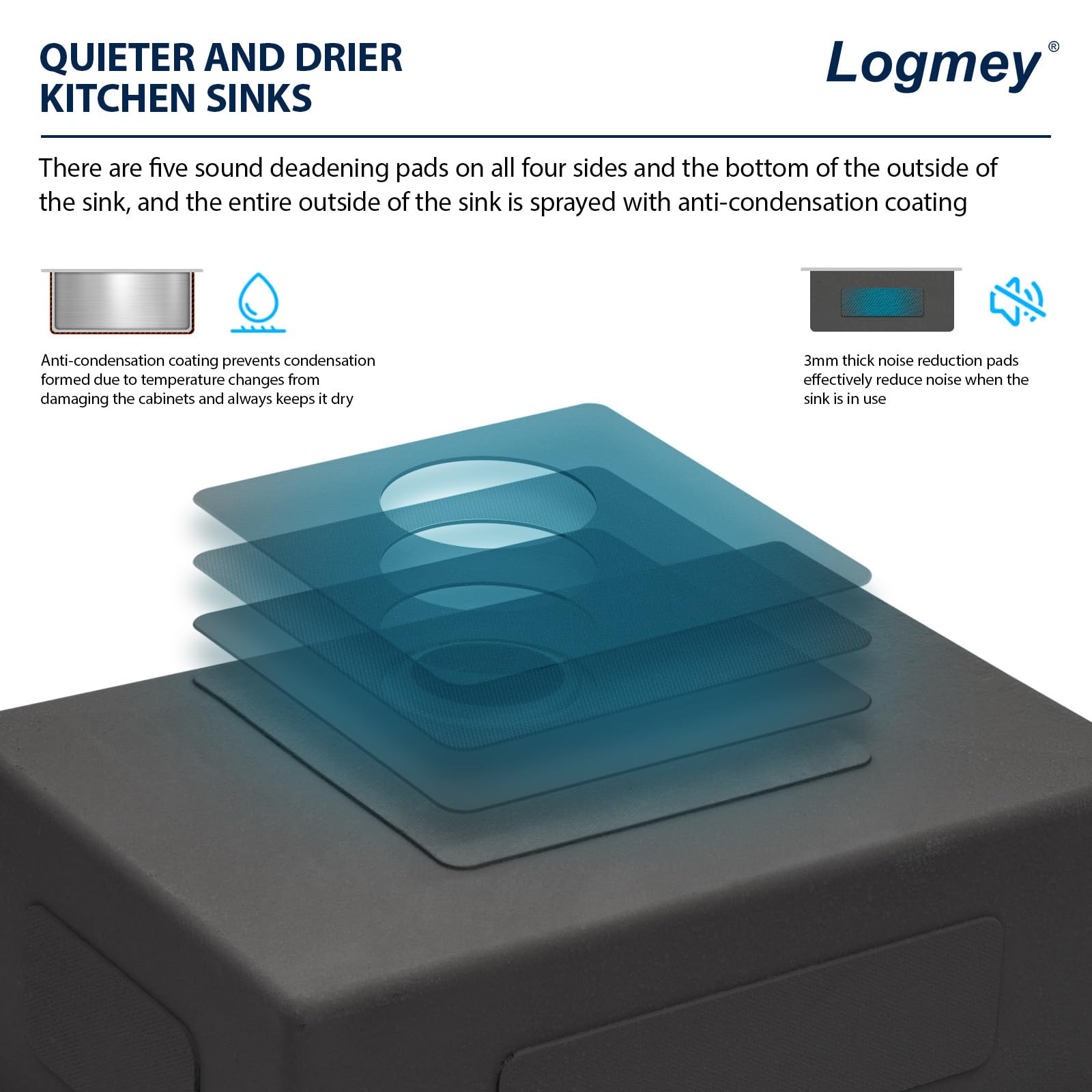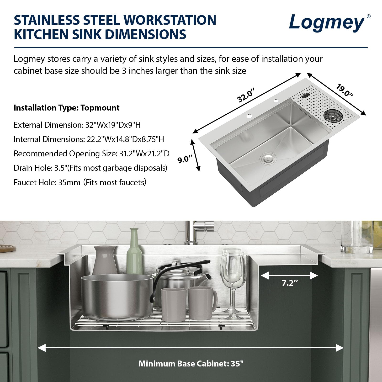 Logmey 33x22 Drop In Kitchen Sink Workstation Black Kitchen Sink SUS304 16 Gauge Stainless Steel Single Bowl Top Mount Gunmetal Black Stainless Steel Sinks