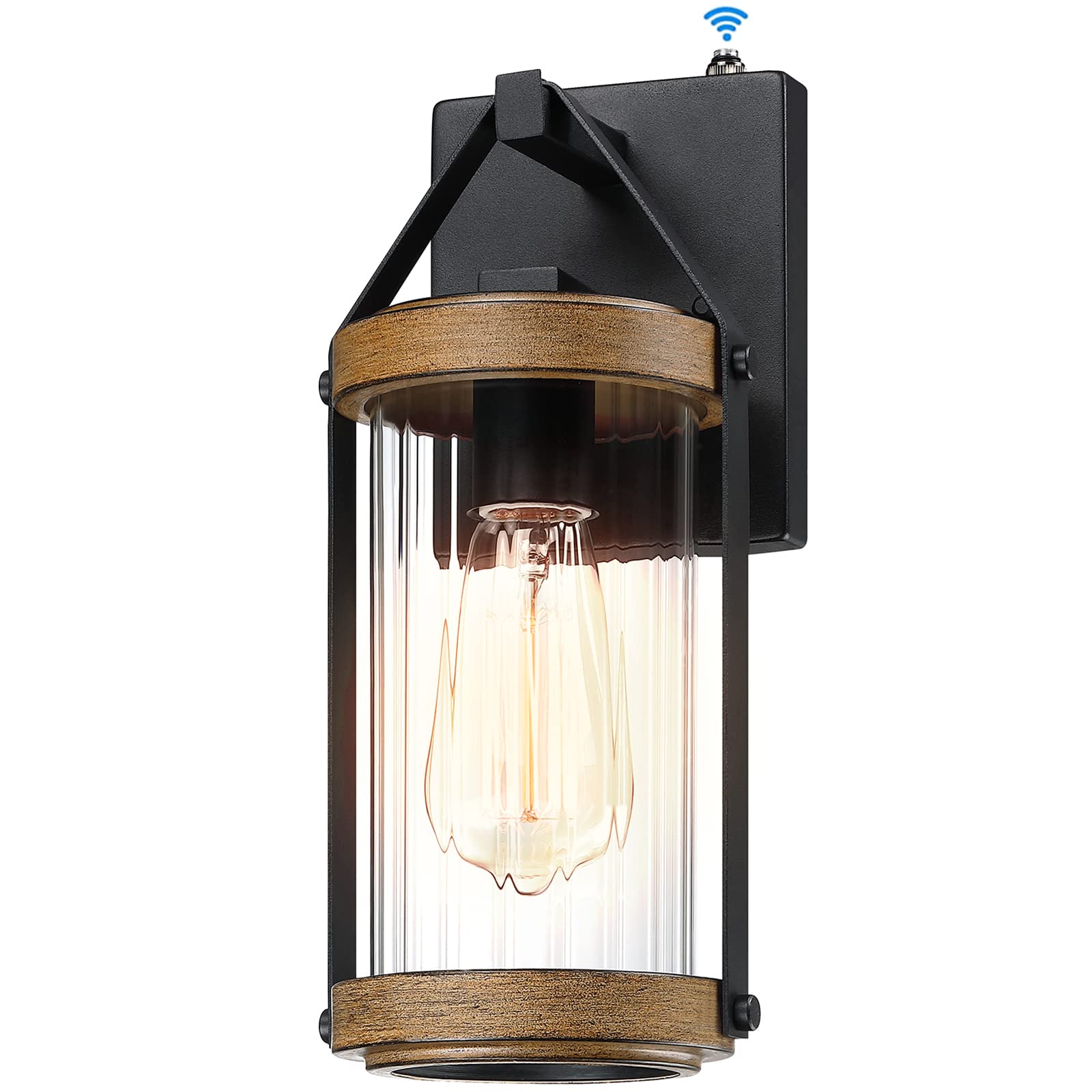 - 【Outdoor Weather Resistant】This waterproof exterior wall light is made of wood-finished metal and clear ribbed glass, the light’s sturdiness, corrosion-resistance, and anti-rust. Whether it's rainy or snowy, ultra-high, or low temperatures, the outdoor wall sconce is still intact.