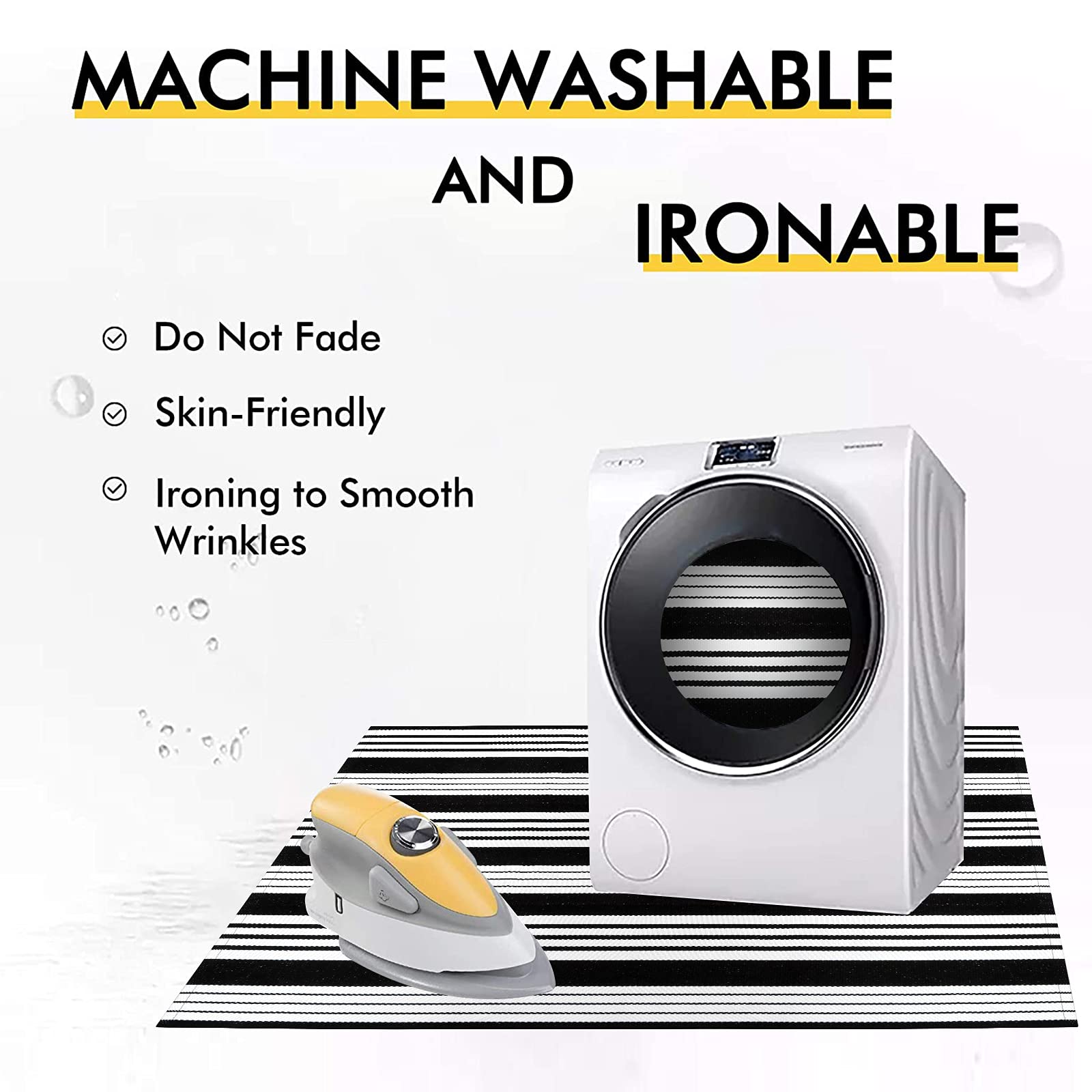 - 【Easy to Clean】: If there are stains stuck in the front door mat, please using the vacuum cleaner, hand wash hang dry or machine washes in cool water, gentle setting, low setting tumble dry. For a deeper clean, use a garden hose to rinse the striped outdoor rug, and fully air dry, or use a low tumble dryer. You can also be washed by machine, but please wash the doormat separately in cold water using mild detergent, and then tumble dry on a low setting and no bleach.
