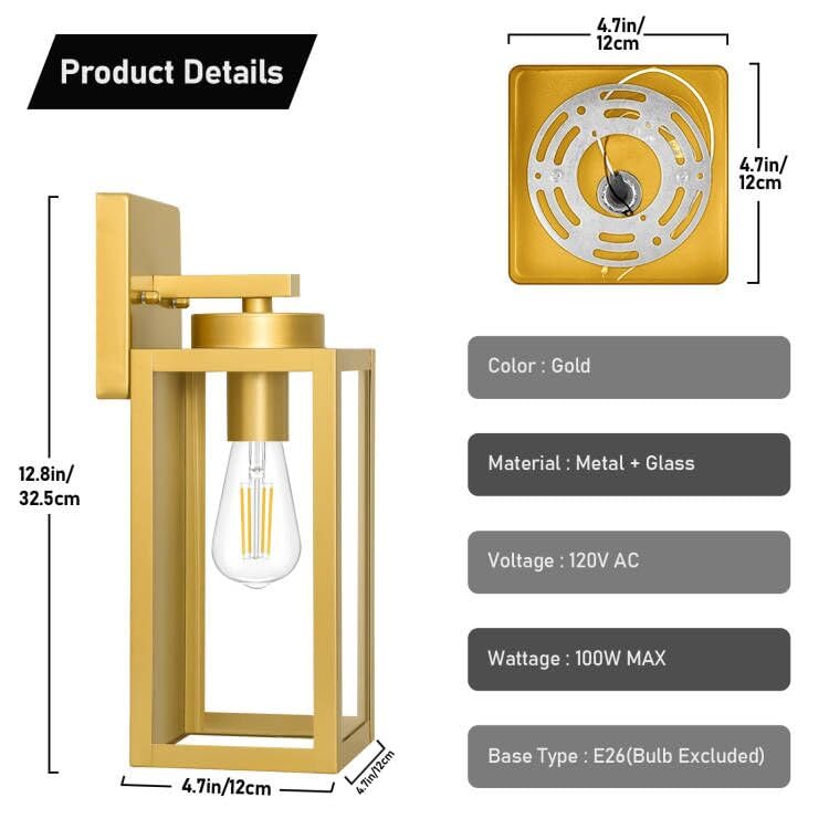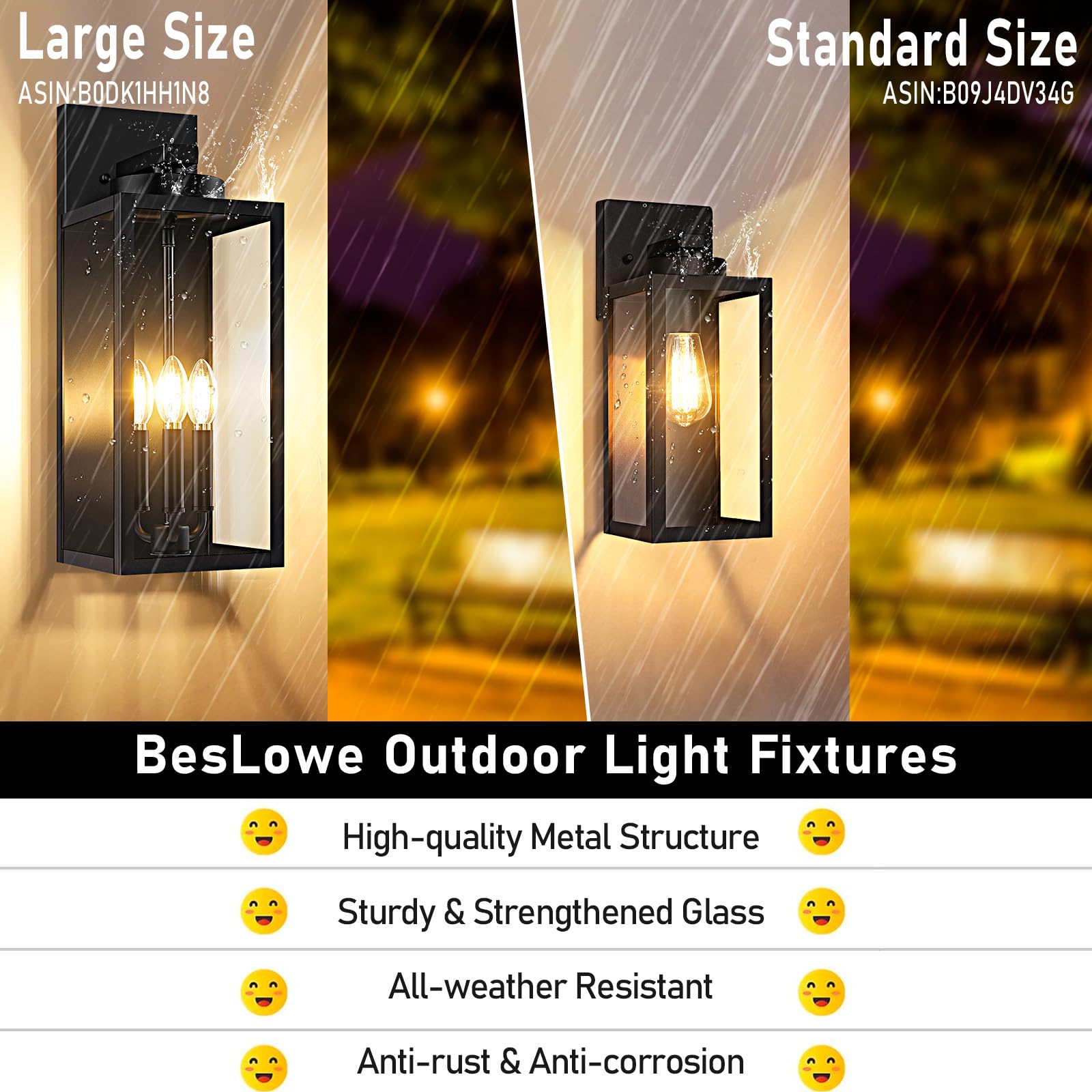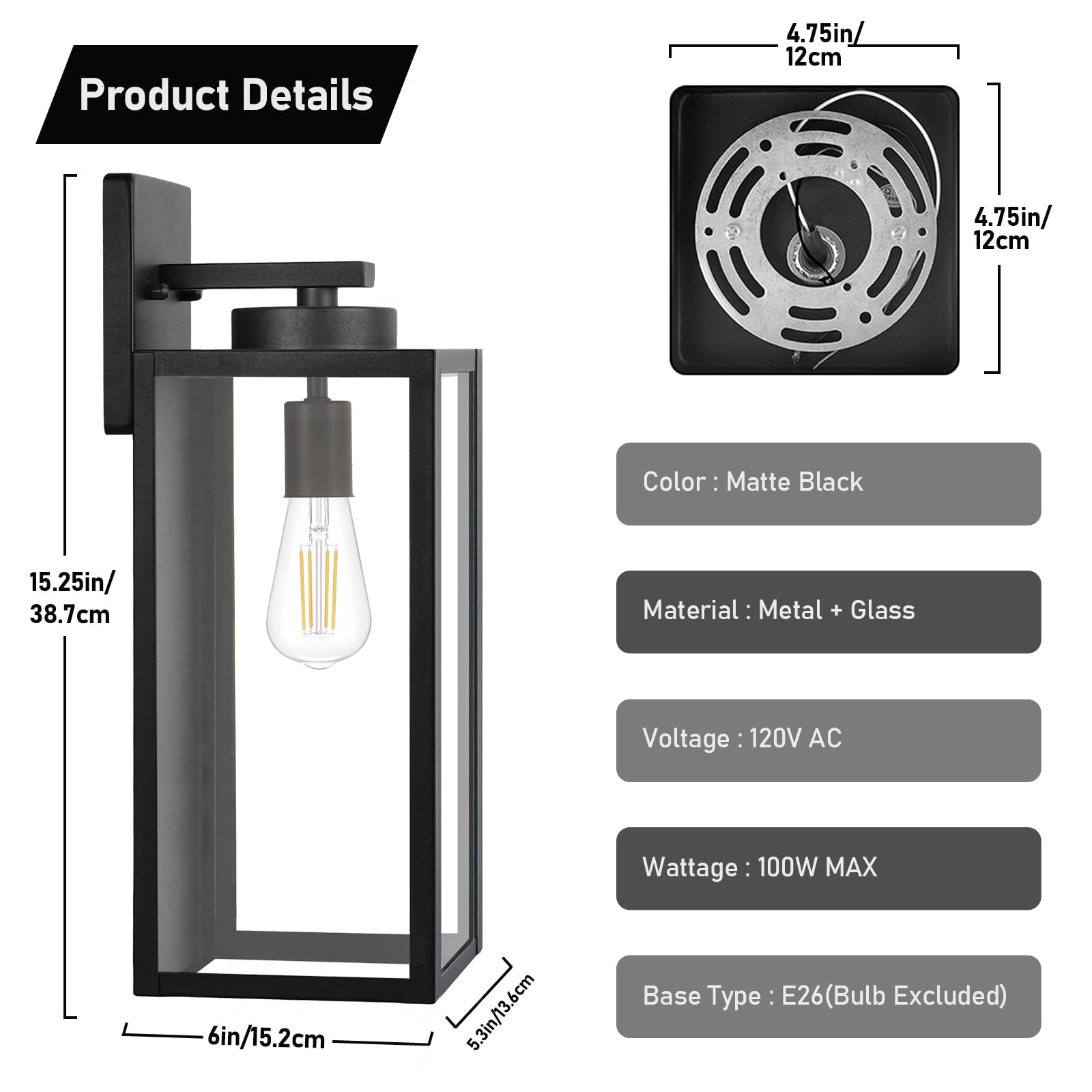 - Weather-resistant Wall Lanterns: Constructed with sturdy metal frame and thickened glass panel, our outdoor wall sconce is waterproof and durable enough to withstand any weather changes, from sun to snow, rain to ice. The high-quality metal effectively prevents the wall light from rust or corrosion to keep its stylish look for years of usage.