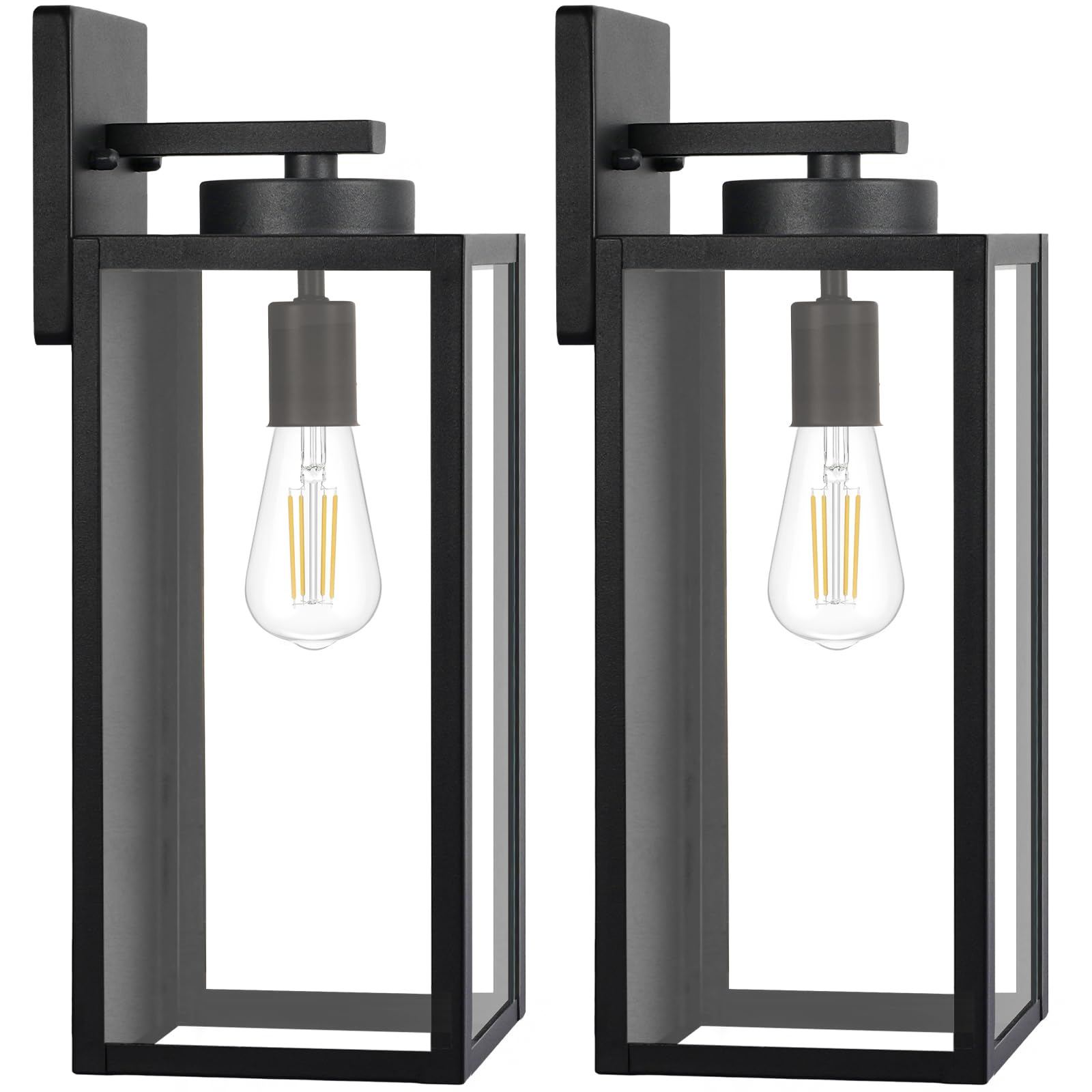 Outdoor Wall Light Fixtures, Exterior Waterproof Wall Lanterns, Porch Sconces Lighting with E26 Sockets & Glass Shades, Modern Matte Black Outside Lights for Patio Front Door Entryway Garage, 2-Pack