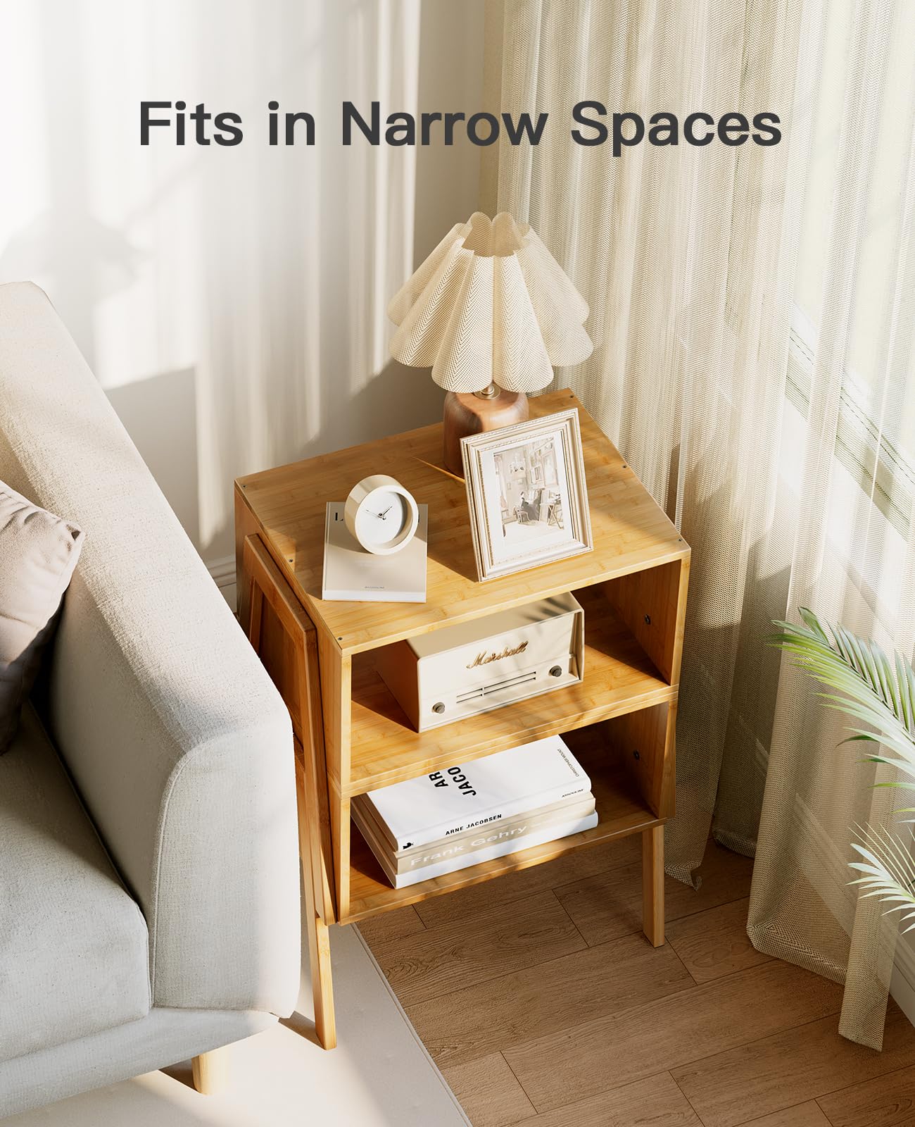 Pipishell Bamboo Stackable End Tables, Living Room Nightstand, Bedside Tables for Bedroom Storage, Set of 2