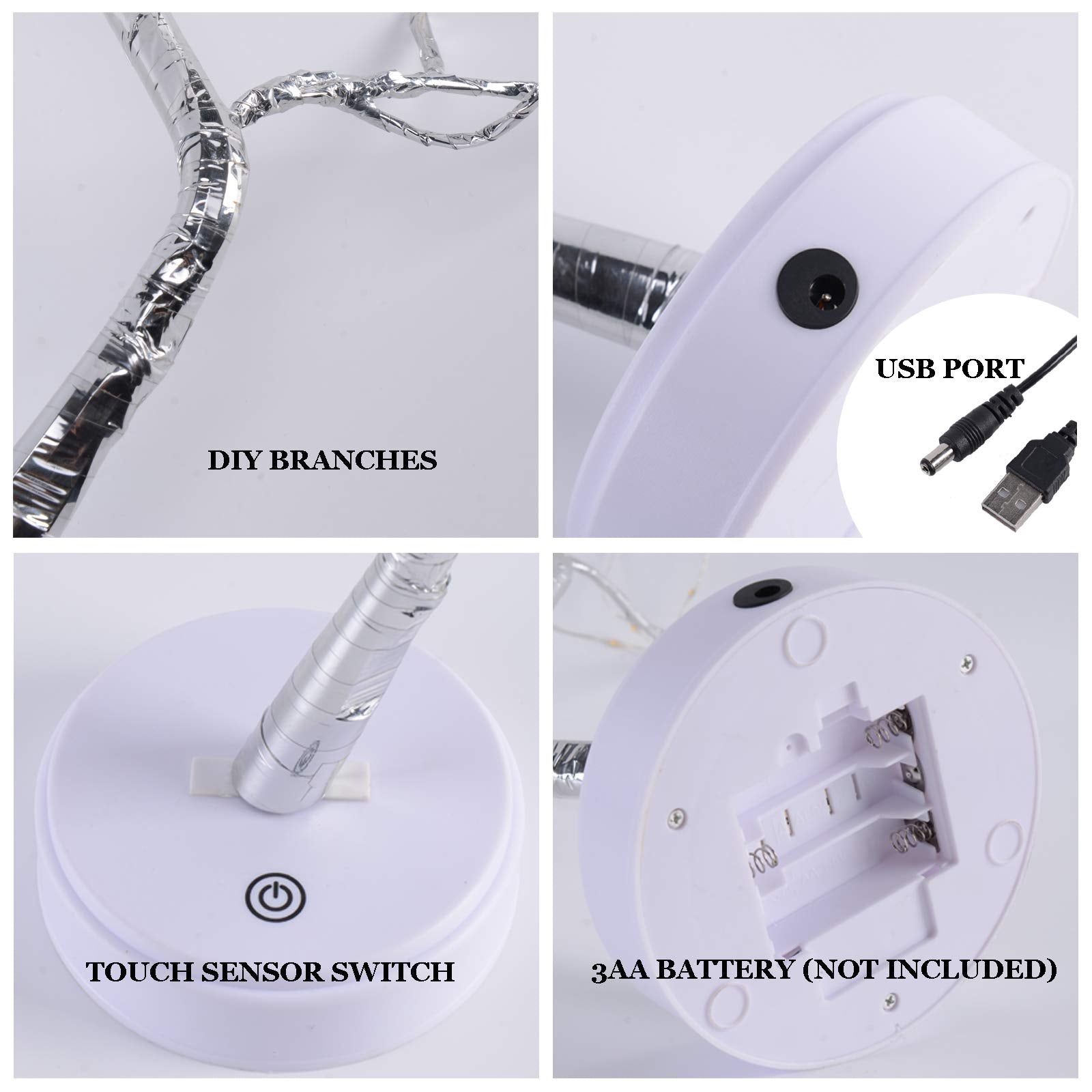 - ➤【High-quality LED Tree Lamp】 LED tree lamp are composed of 108 LED copper wire string lights, touch sensor switches, ABS bases, and artificial branches. Operated by USB or 3 AA batteries, LED bulbs will not generate heat for a long time, safe and energy saving and save money. This LED tree light is a necessary decorative night light for your bedroom.