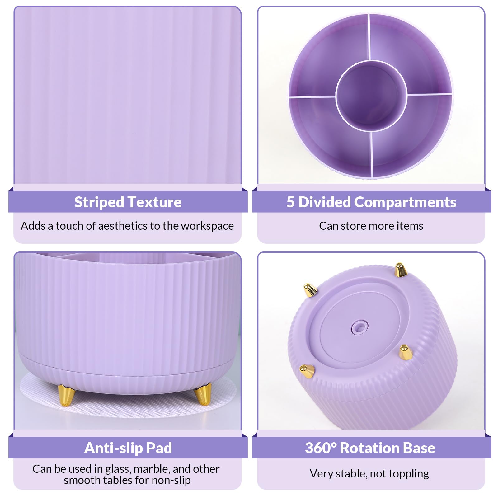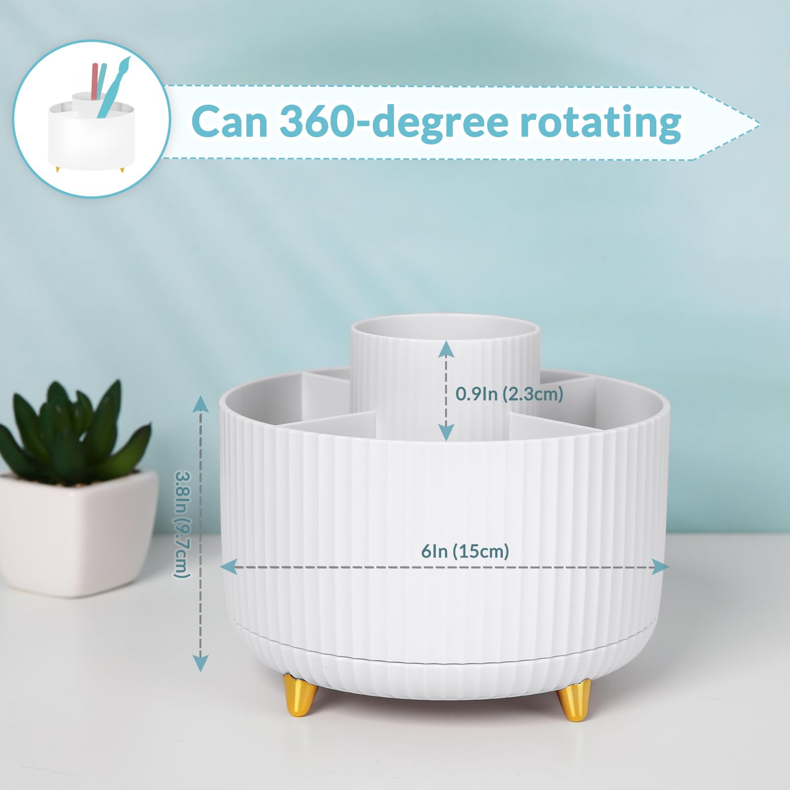 SKYDUE 360 Rotating Plastic Desk Pen Organizer with 5 Slots, Dual-Purpose Art Supply Pencil Cup for Office, School, Home