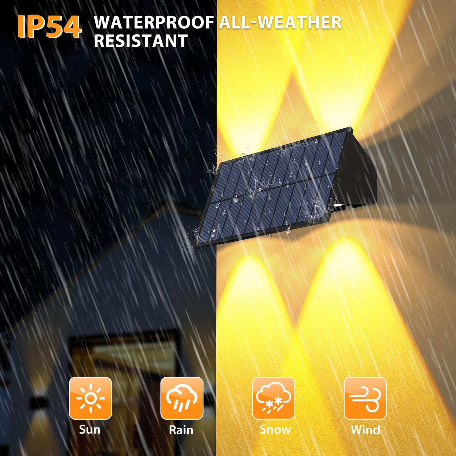 [IP54 Waterproof &Widely Application] :No need to worry about the weather. The structure of the light is designed to be waterproof.Designed with weather-resistant materials and a waterproof rating, this fence solar light can withstand a variety of outdoor conditions, such as rain, snow, and extreme temperatures. This is a solar light outdoor waterproof, suitable for wooden fences, decks, porches, patios, garage doors, gardens, villas, steps, fences, passages, stairs, etc.