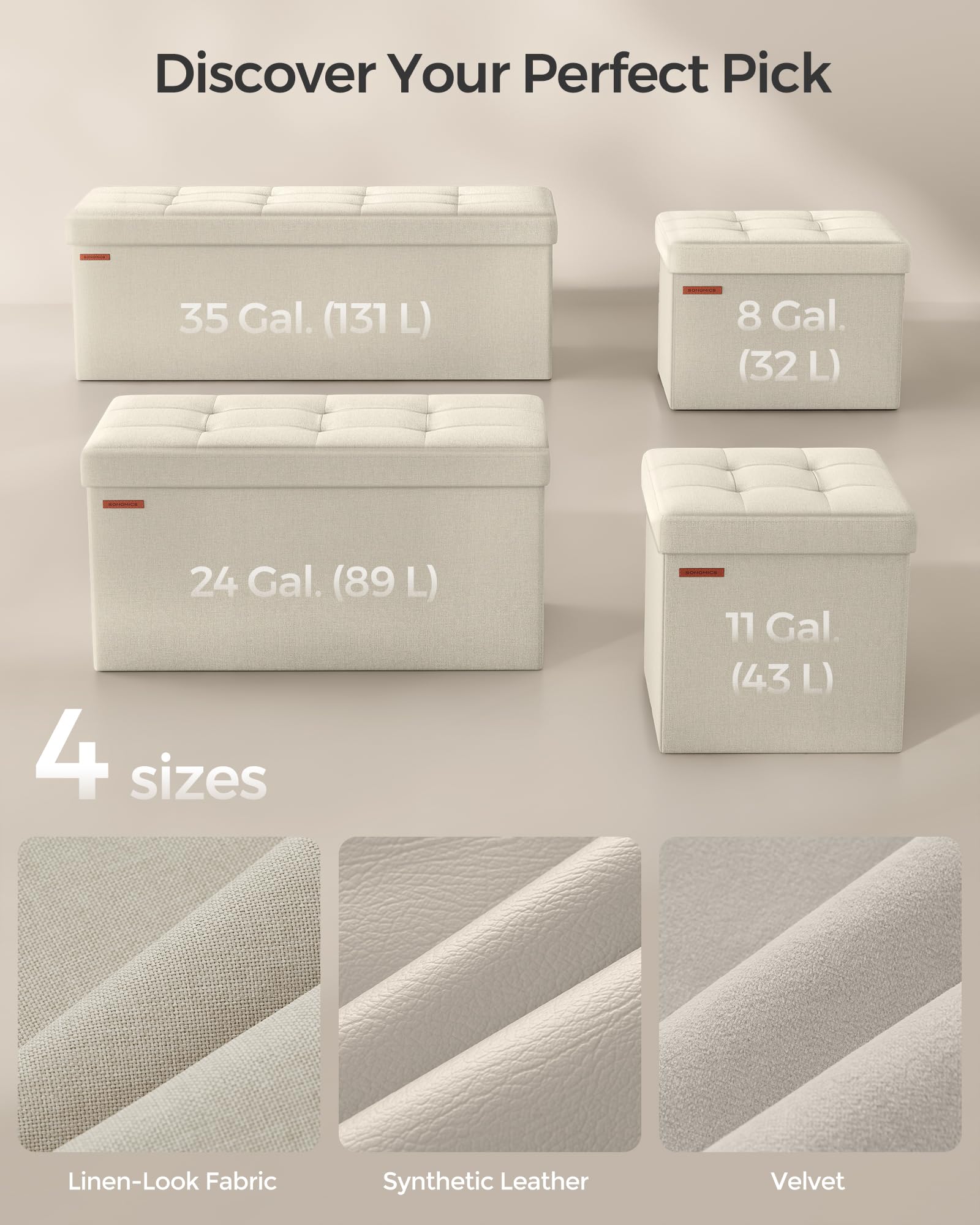 - 【QUICK ASSEMBLY, EASY FOLDAWAY】This storage ottoman from the SONGMICS MAZIE Collection has a foldable design that allows quick setup in seconds by simply inserting the bottom panel. Easily fold and store it under the bed or in a closet when not in use