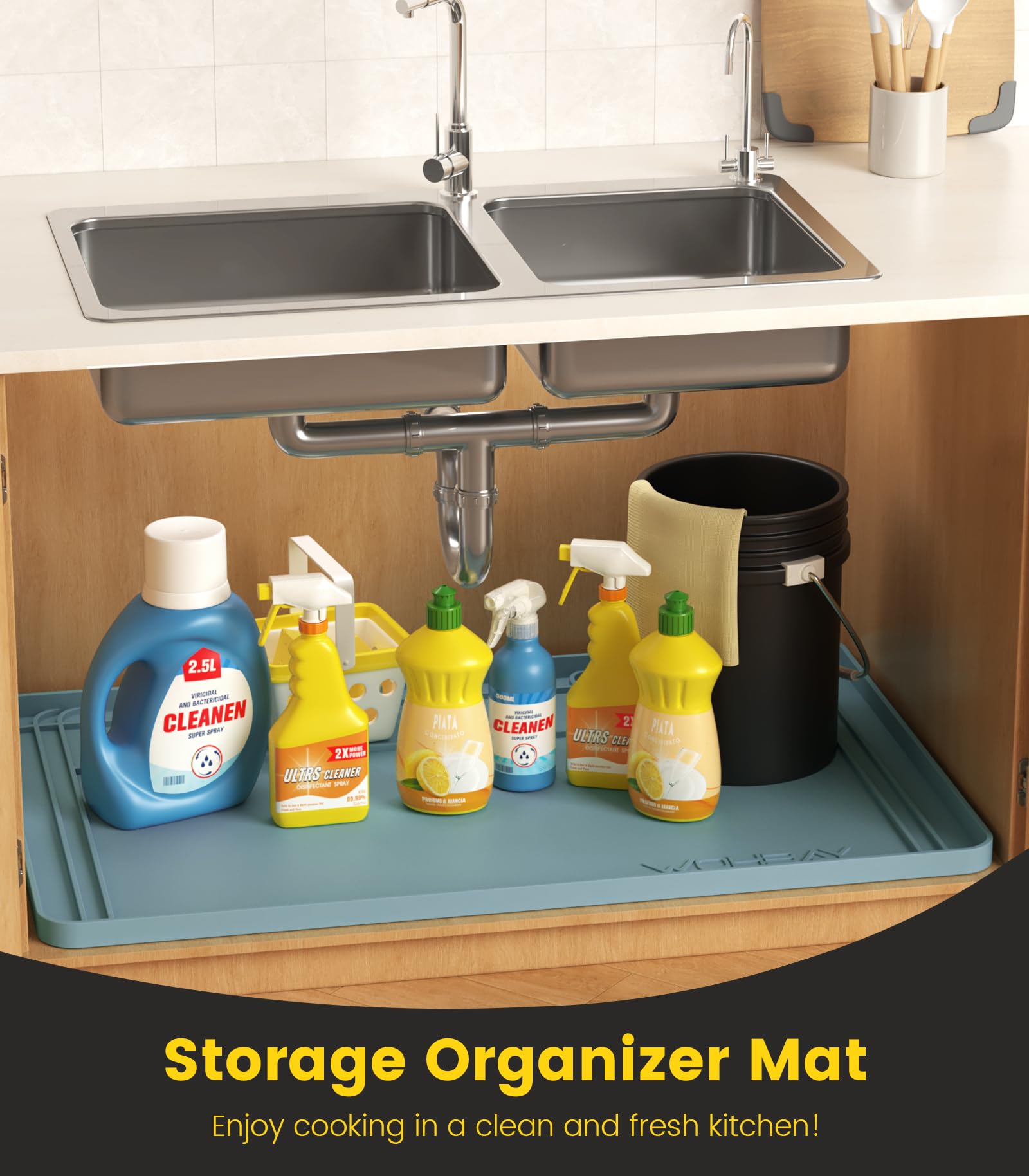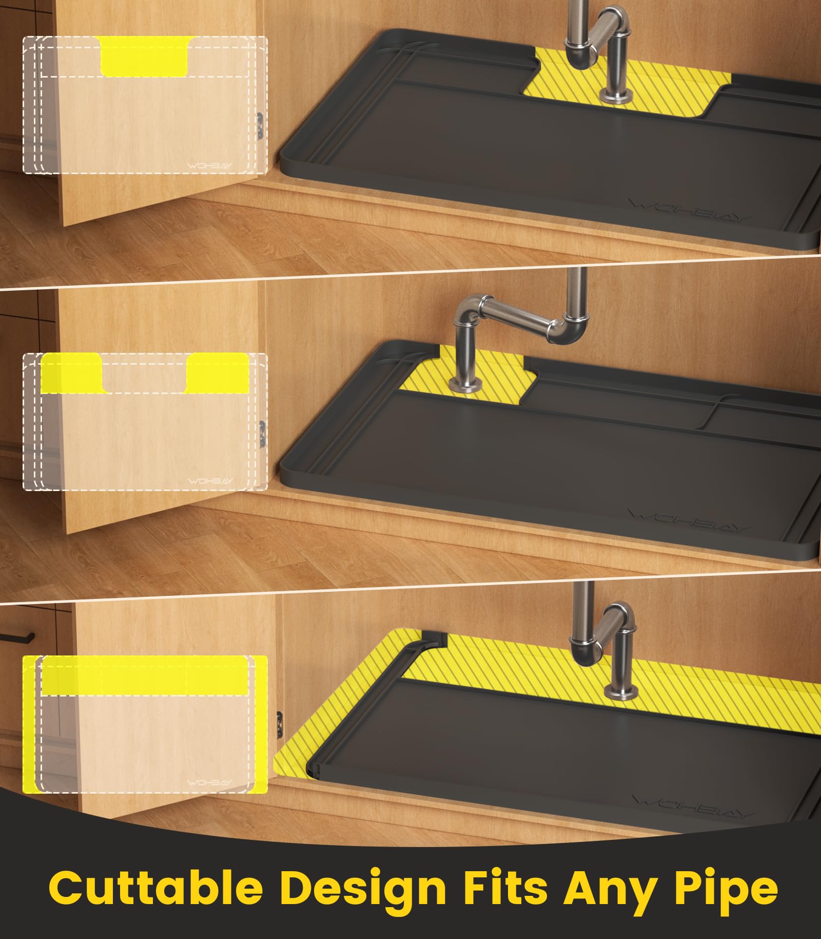 Under Sink Mats for Kitchen Waterproof, 34" X 22" Or Smaller Cut to Fit Under Sink Drip Tray for Kitchen Bathroom Cabinets