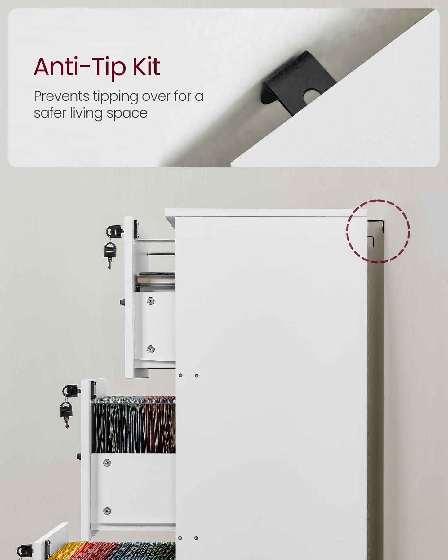 VASAGLE 3-Drawer Vertical File Cabinet, Rustic Brown and Black, for Home Office and Bedroom, A4 and Letter-Size Files, Lockable Drawers