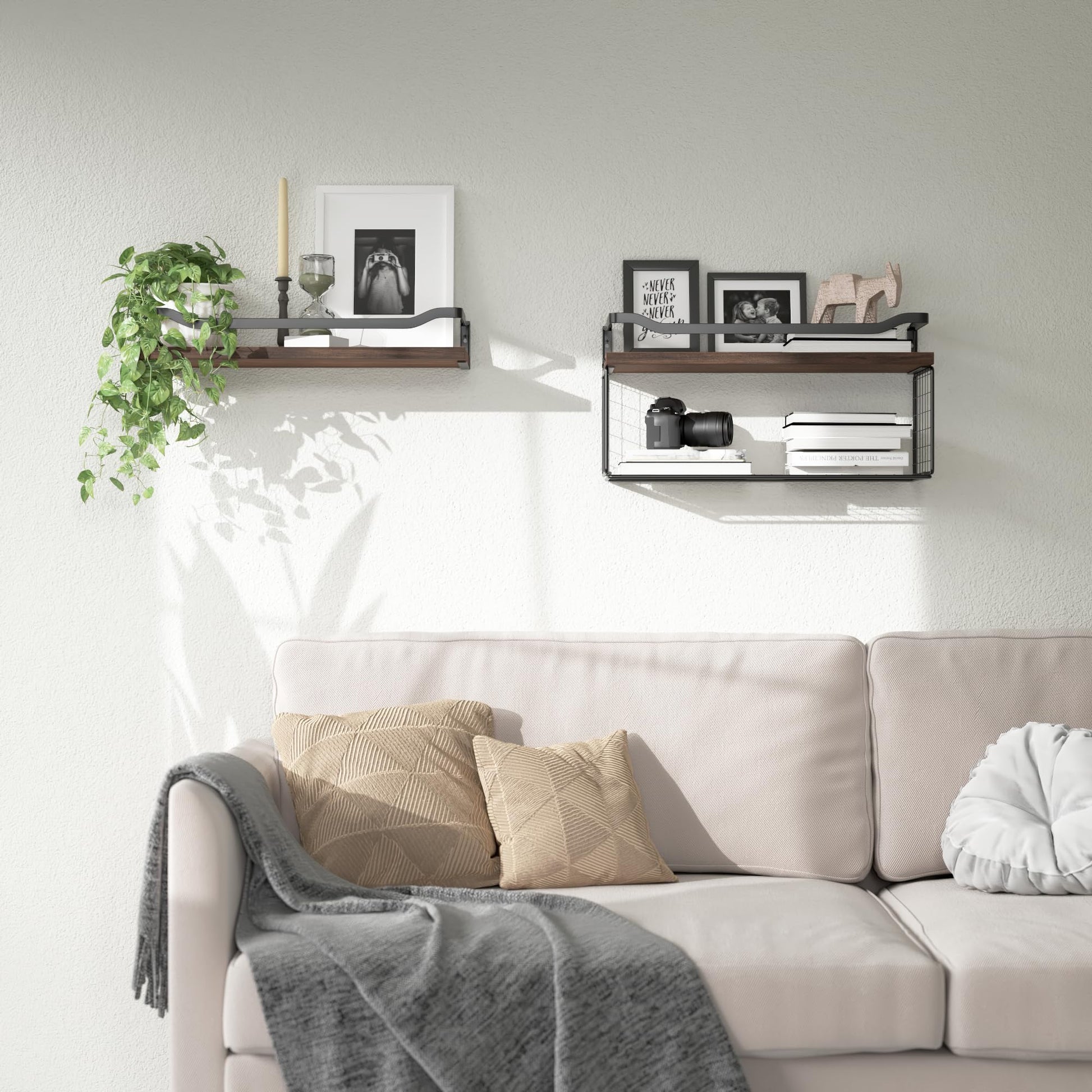 - 【Superior Quality & Sturdy Construction】- Our floating shelves are handcrafted from solid and long-lasting wood- which gives you a more comfy use for years to come. The wire basket and metal guardrail are forged from the toughest steel and powder coated to prevent rust for a long period of use. More stable and robust construction are offered by WOPITUES floating shelves- each shelf is sturdy enough to hold 20 lbs with ease!