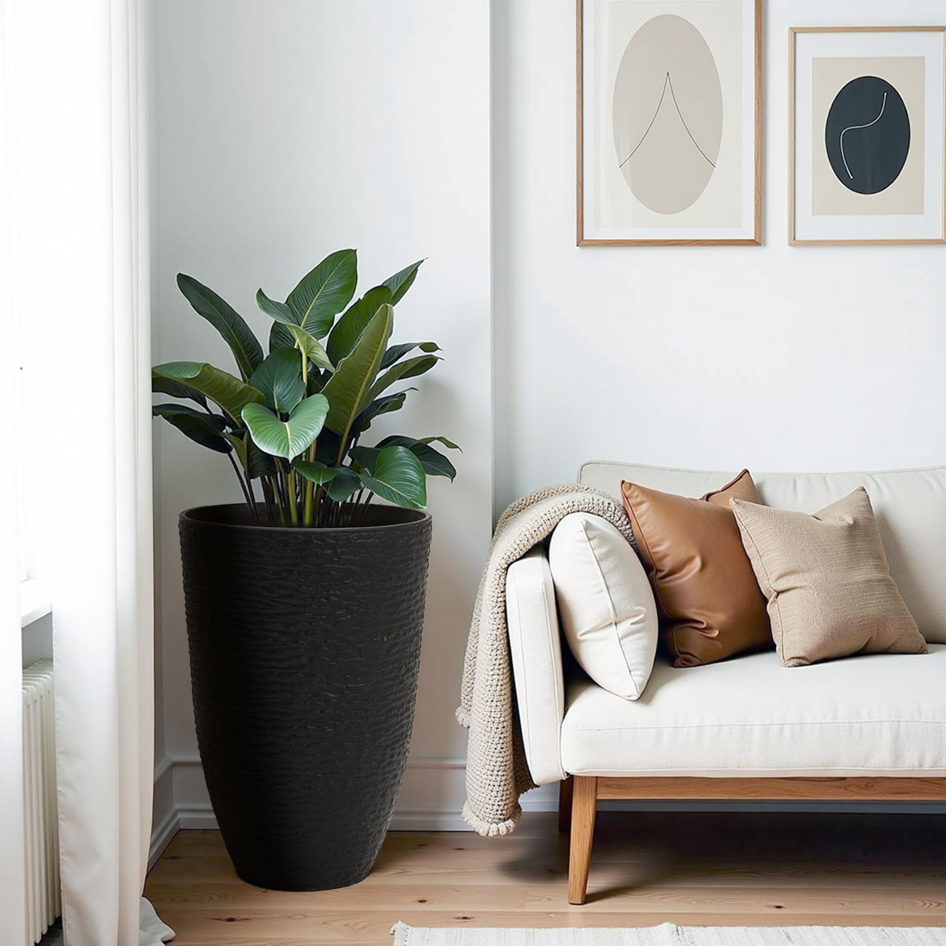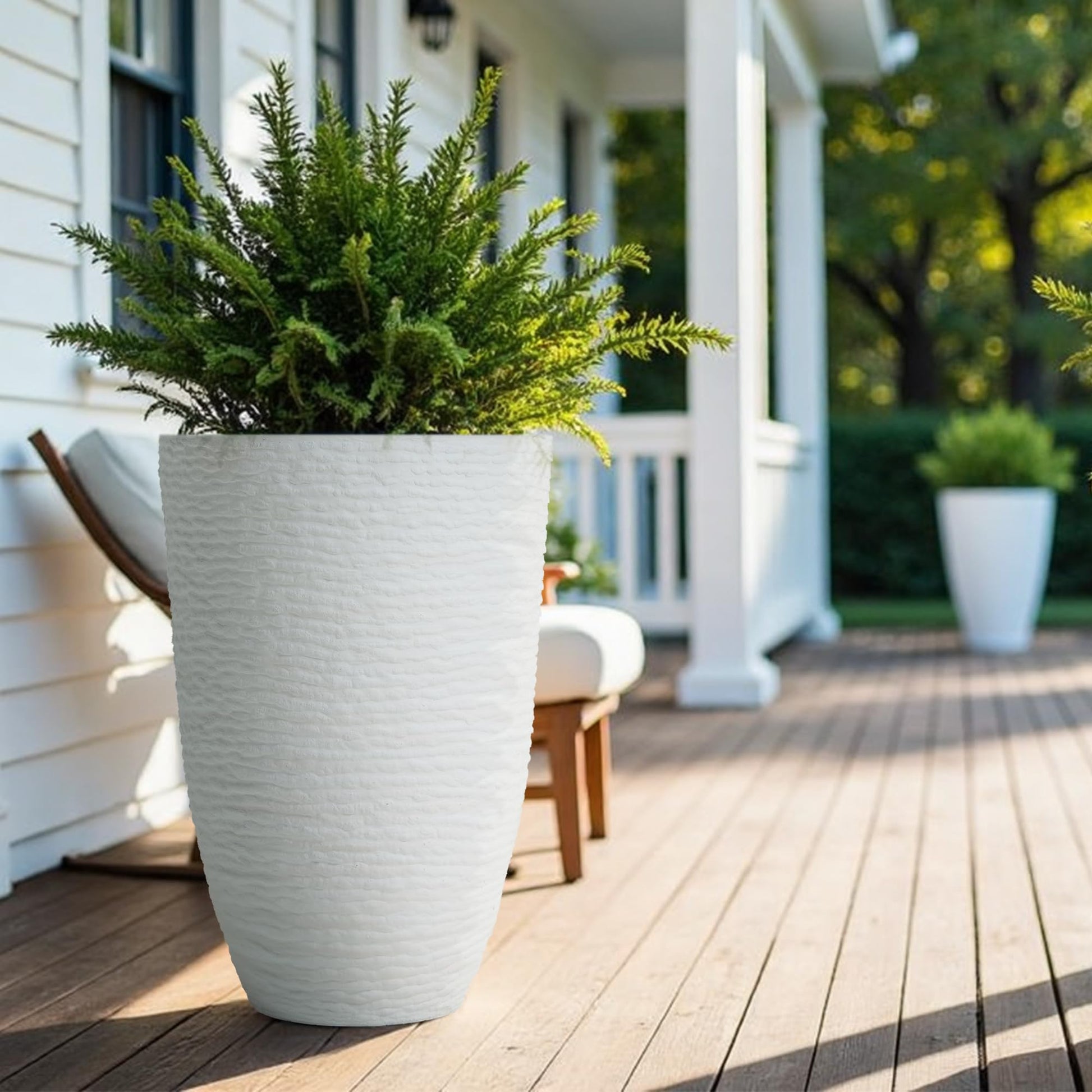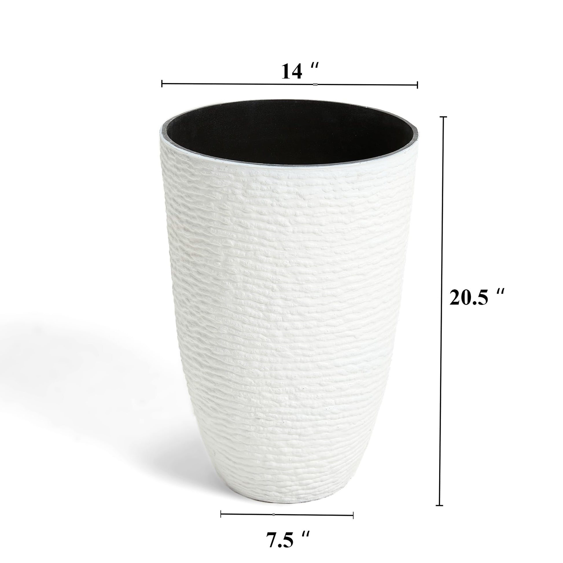 - Classic Appearance: Its curved silhouette and raised details offer up a touch of classic character, while a solid matte finish with grain texture updates the look; These tall tree planter is an ideal for a patio accent or flanked along an entrance wall; Gives your tall plants a tall planter! Size:14'' (Dia.) x 20.5'' (H.)