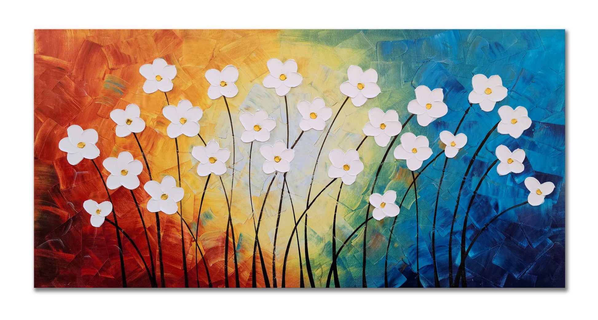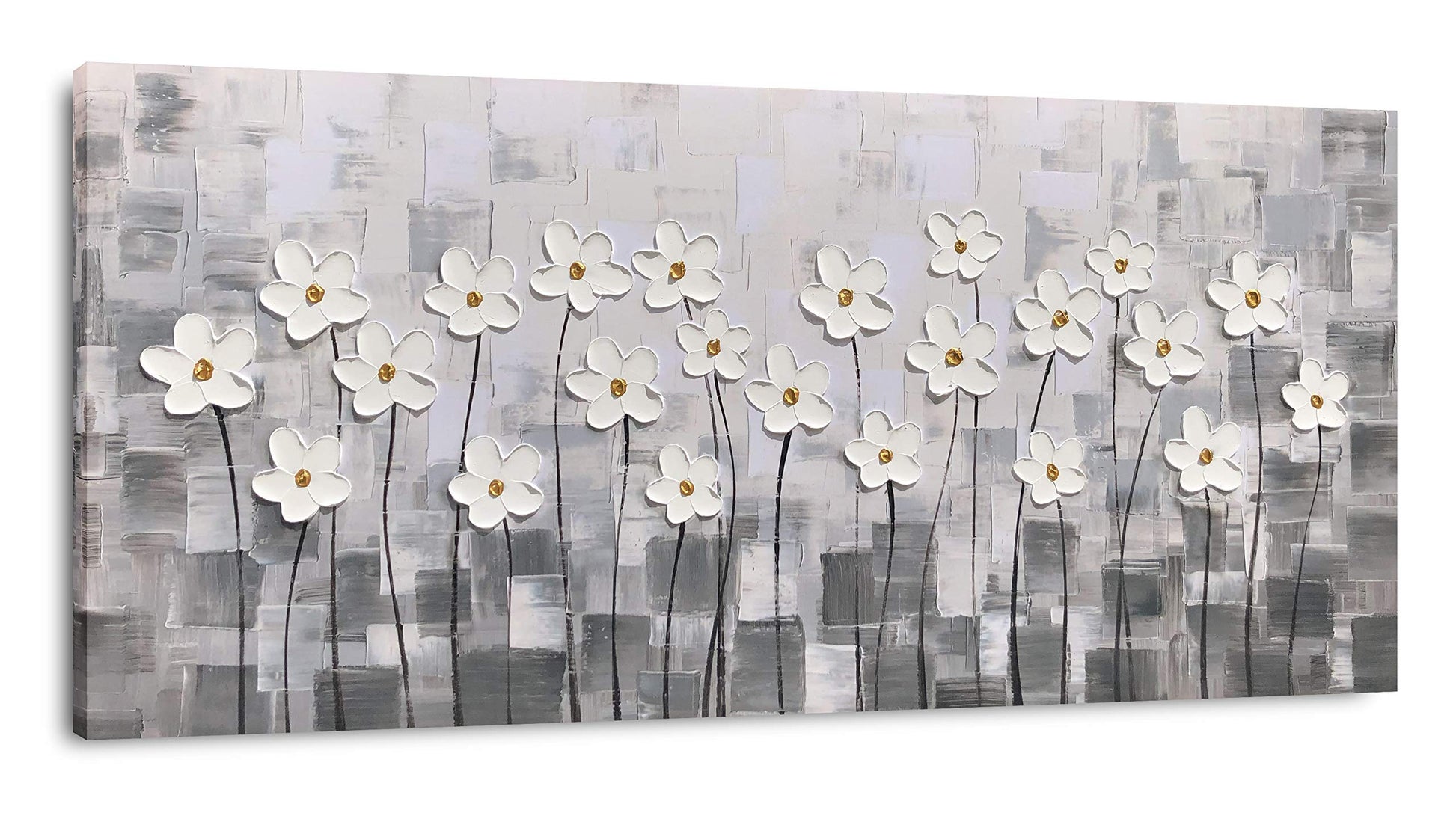 Yihui Arts White Flower Canvas Wall Art Hand Painted 3D Colorful Oil Painting Modern Aestheric Pictures for Living Room Bedroom Dinning Decoration